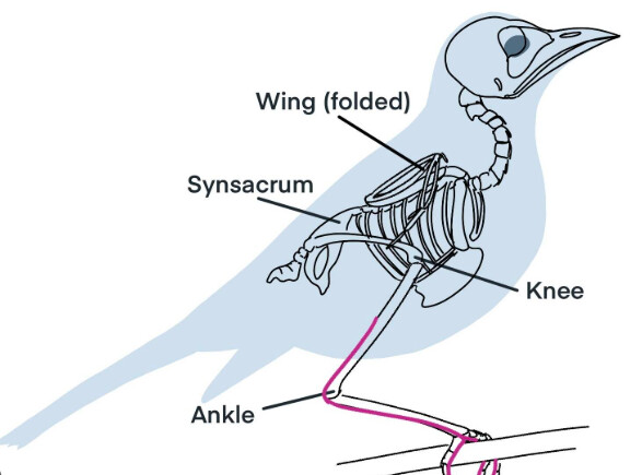 Its not about if they are biped or quadruped but their posture. With birds their head and whole body is inclined or leaning forward from their feet. When a lot of birds stand they are really bent forward at the knee. We only see the lower part of their legs because the upper part is hunched into their body for balance.