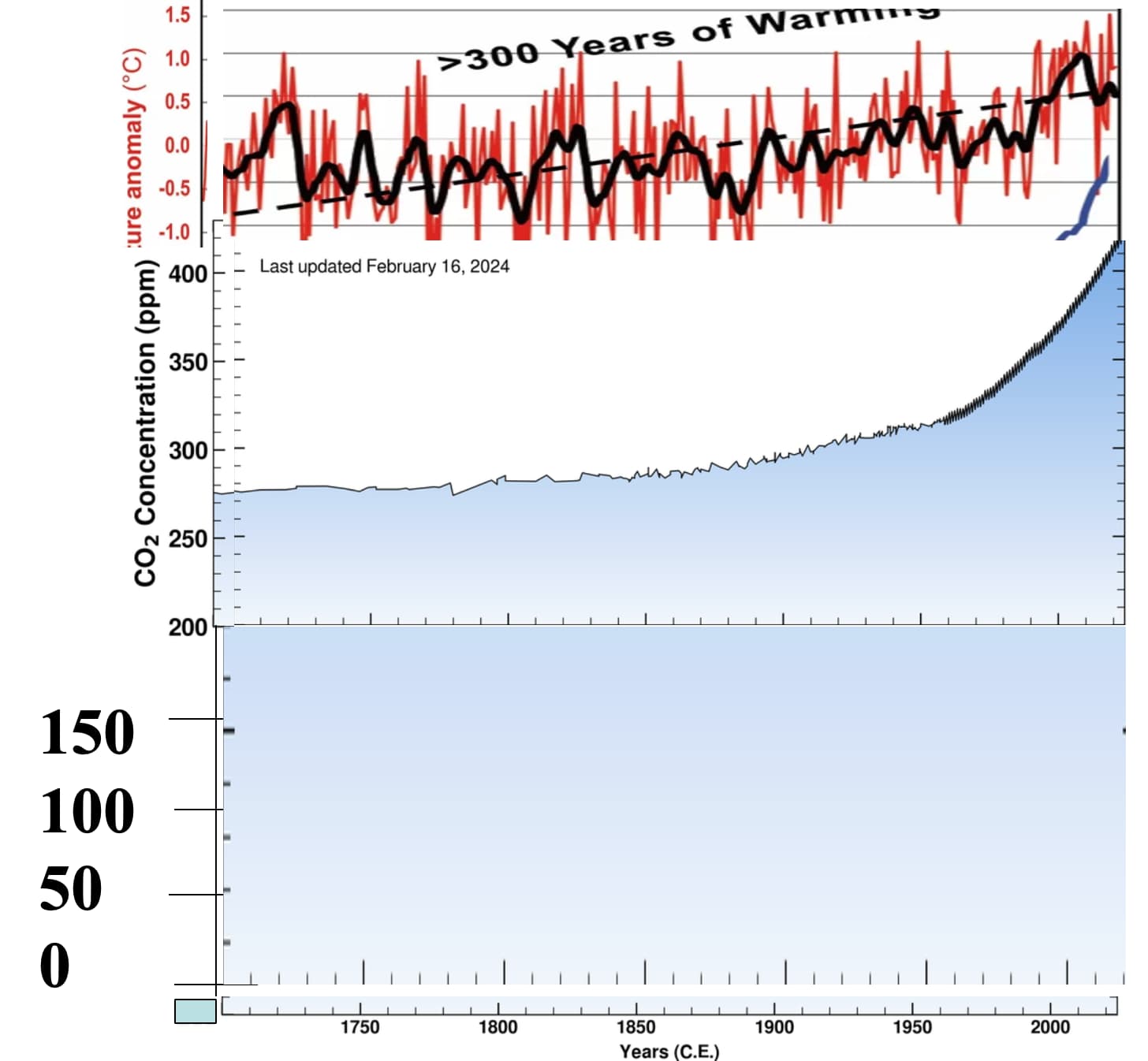 Below are one set of “sourced” temperature data. In particular, note the strong rise from 1650 to 1850. Why is not the current rise attributed to the same mechanism? It is interesting that the current rise is correlated with the rise of CO2…..but, it is causation or correlation. How are all of these other ups and down described without CO2. By your definition, those wishing to divert TRILLIONS of dollars from clean water, better hospitals and better education around the world into solar panels should be able to provide IRONCLAD …..IRONCLAD evidence of the new mechanism. Oh….and one other teeny weenie little point. During most of the period shown, CO2 levels were at around 225 ppm in the atmosphere. They would most likely been doing their greenhouse thing during that period. So, it is only the increase beyond 250 ppm that can be used to blame the current rise.