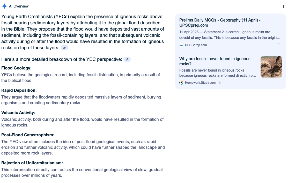 BTW, the phrase “waters beneath the earth’s surface” in that AI summary doesn’t mean underground aquifers, it means the “waters below” of the great deep – the t’hom – of Genesis 1, which are the still-existing fluid of chaos and darkness that the earth sits on.