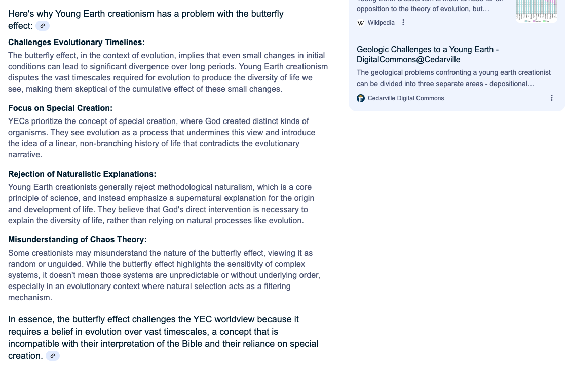 Chaos theory relies on time, however, in the context of the biblical account, its the “arrow of time”…one direction. Creation was finished by the time of the birth of Cain and Abel and long established by the time of Noah.