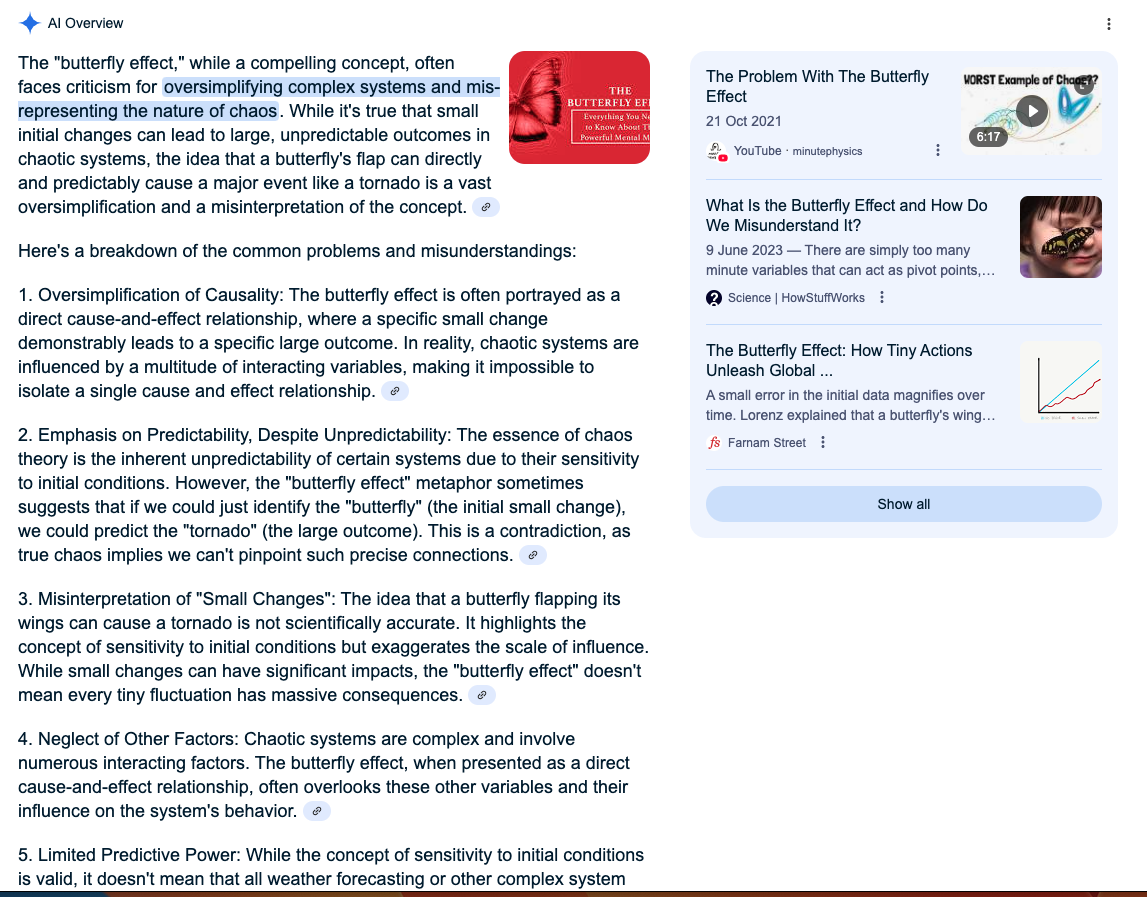 Oh and btw…some reference material for you to google and then read on the Butterfly effect: