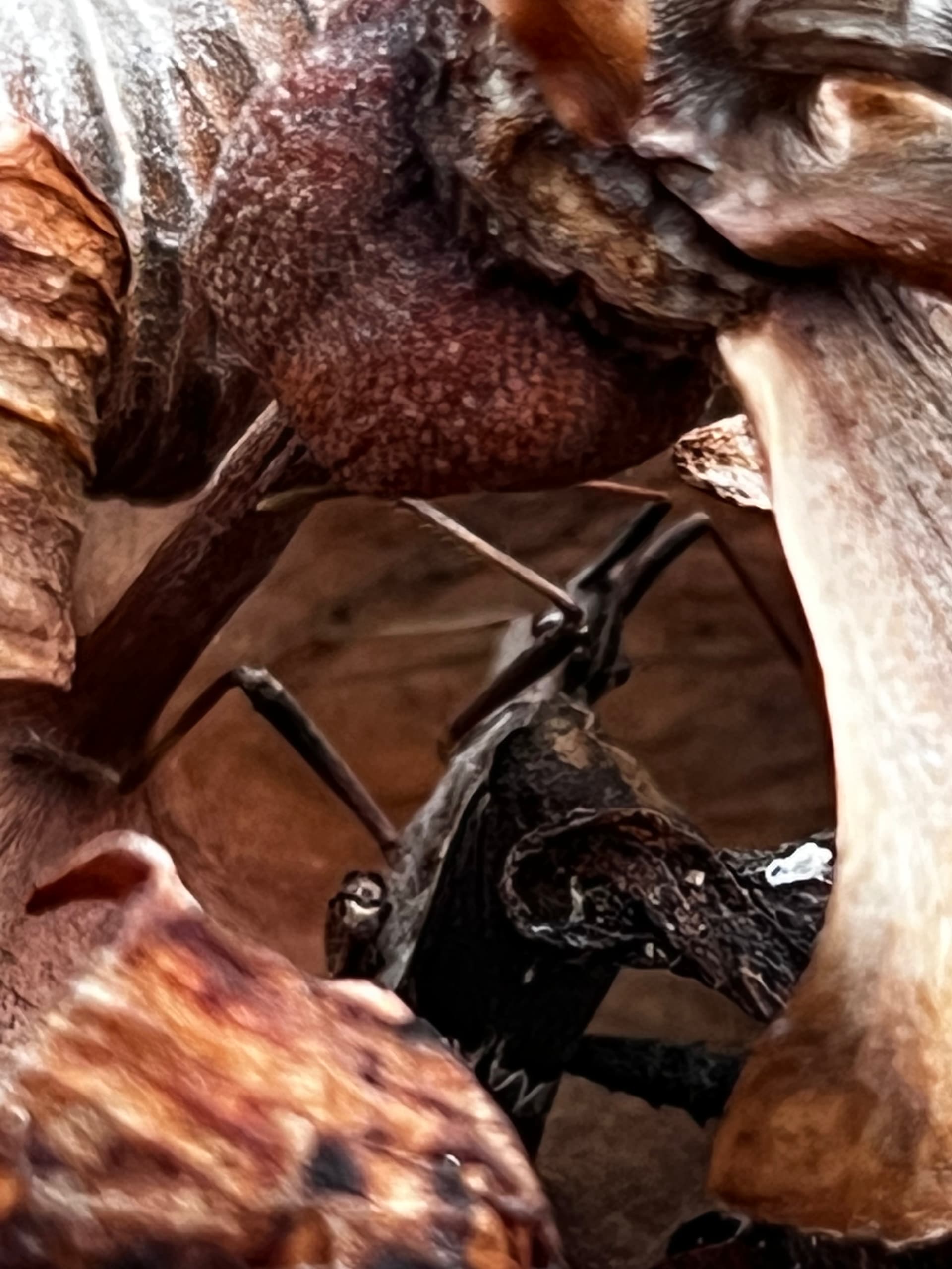 Pitcher Plant flower , dead , with a bug staying warm inside of it.