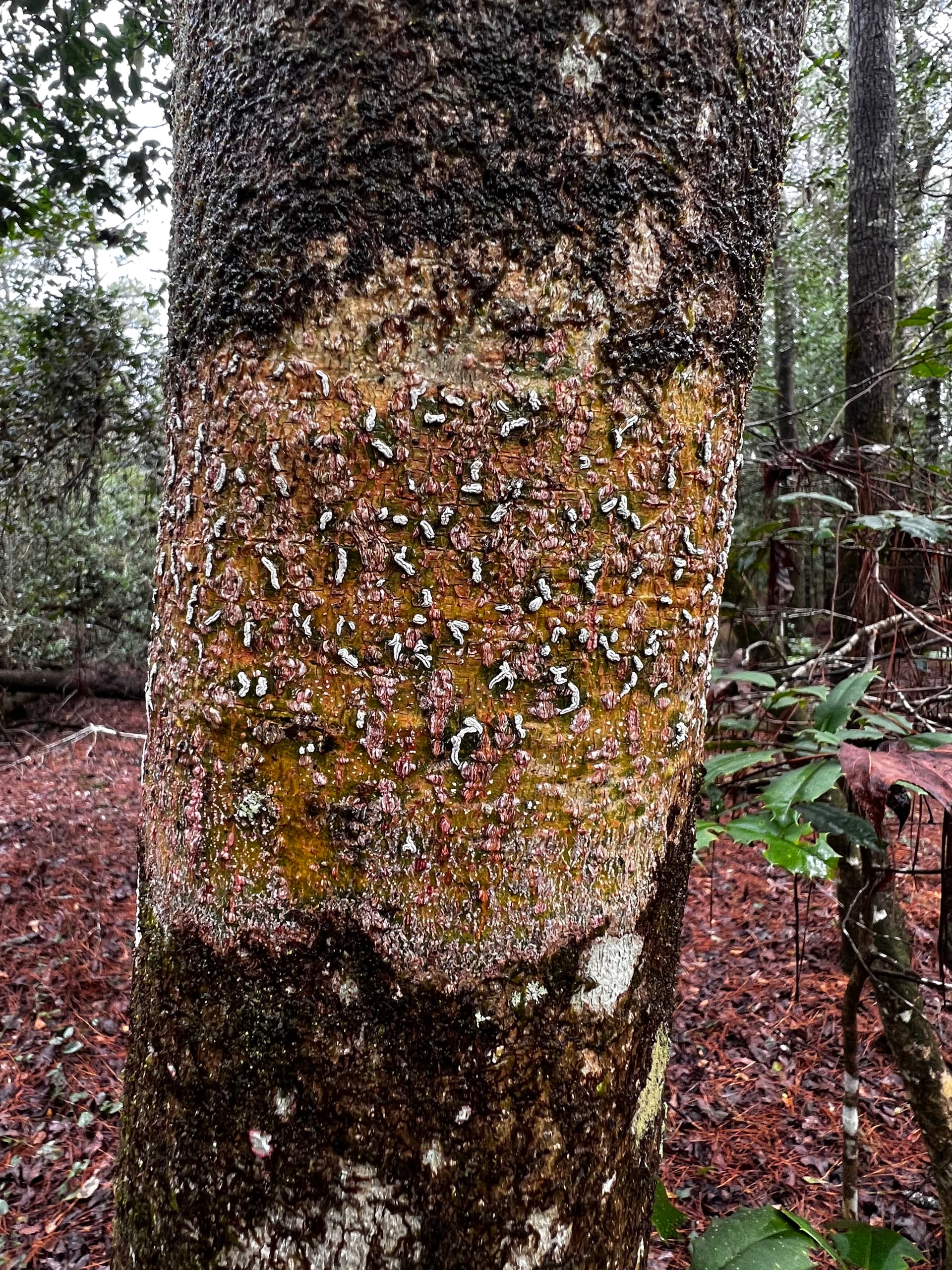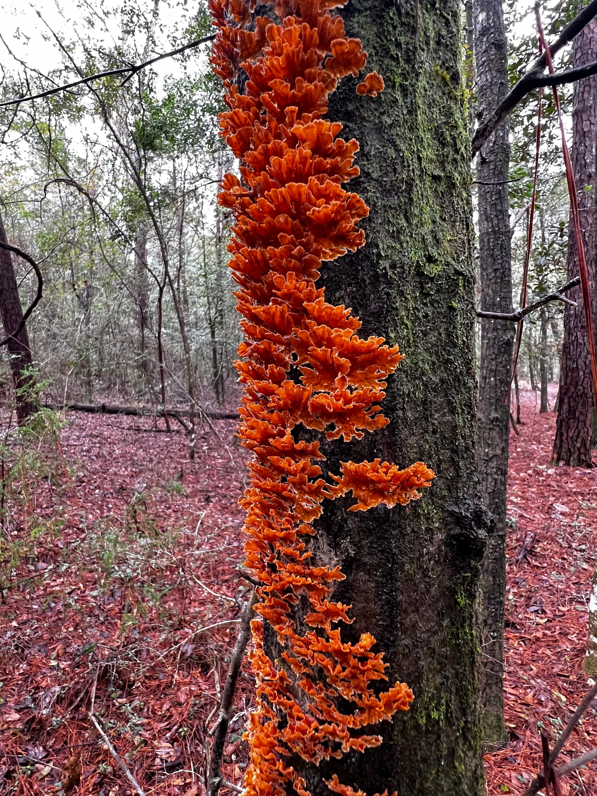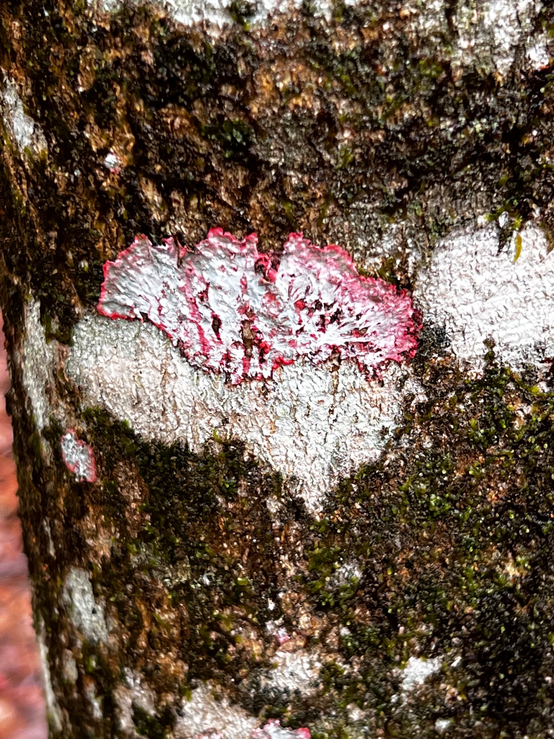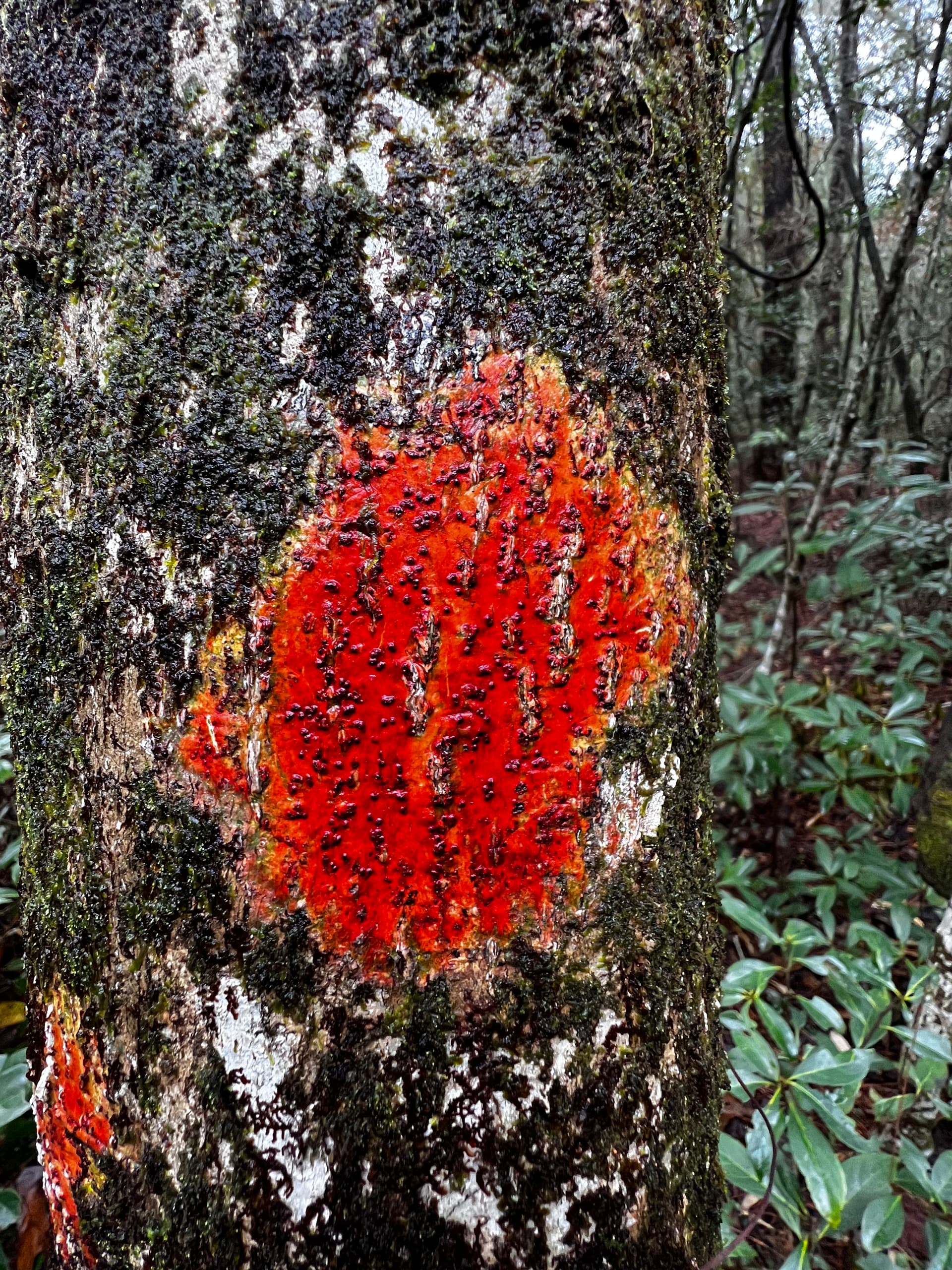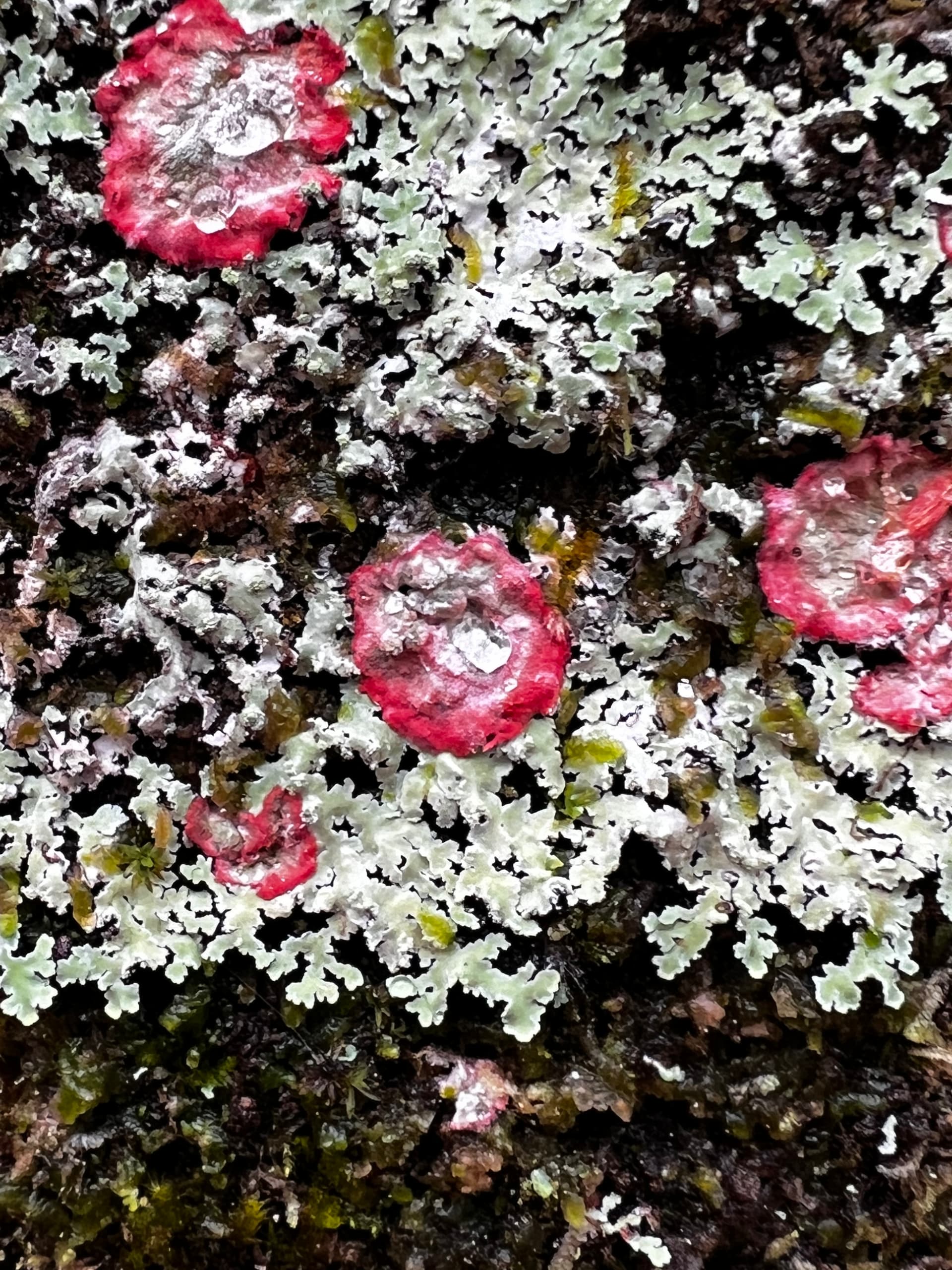 The bark rash lichen ( the one that looks like a wound ) is one of my new favorite ones. Ties into my love for gore xd. The other species was really orange looking. Some kind of shelf mushroom. I’m not sure if it’s a different species from what I’m use to or if it’s a much more pigmented version of the yellowish ones I typically see. I wonder if the bright red and orange colors of all of the clay helped it.