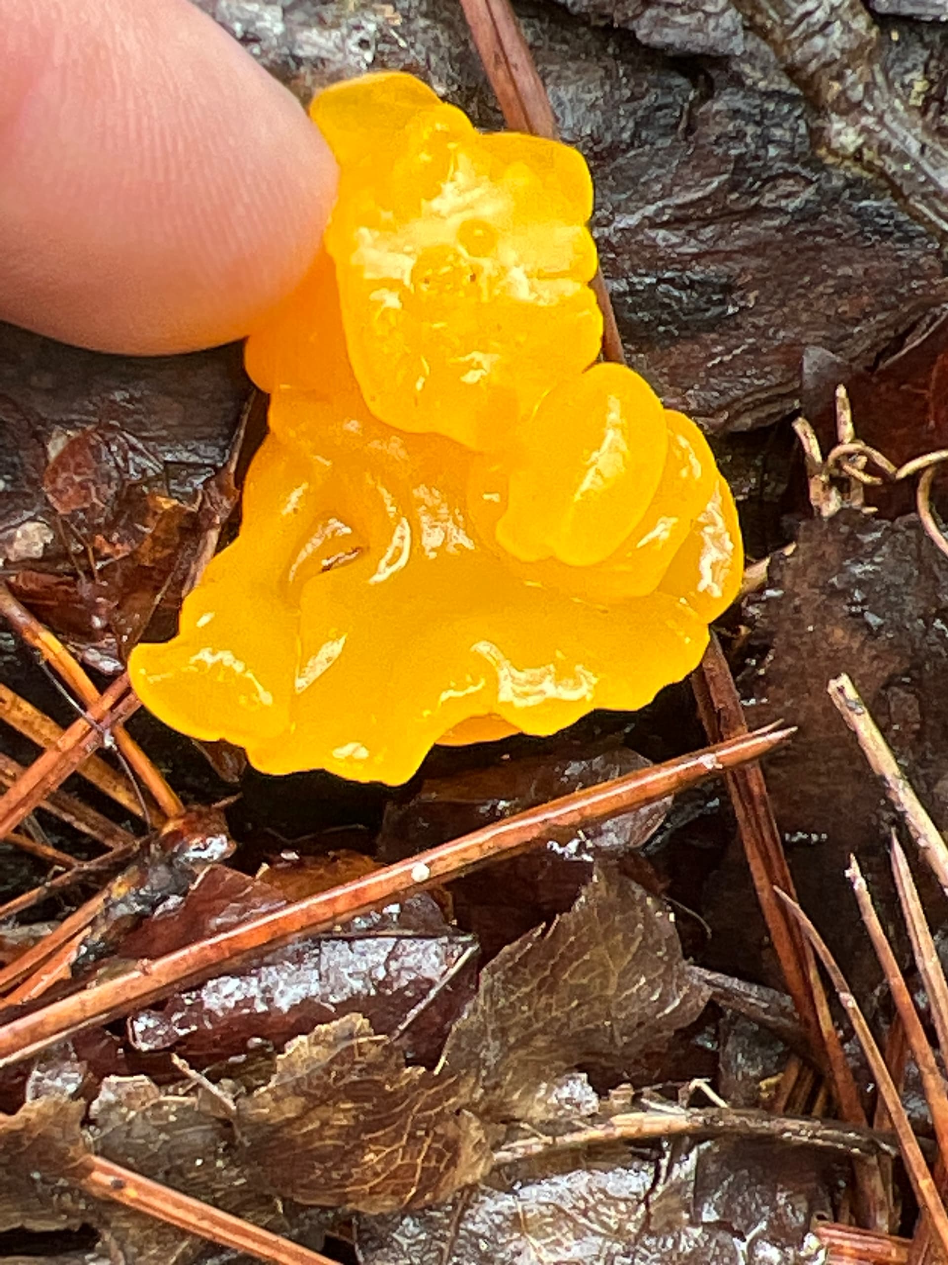 Some oranges and yellows in nature from todays hike. I really like clay mud puddles with that orangish look to it. Yet it still reflects very well. The fungi is a jelly mushroom called witch’s butter and is edible.