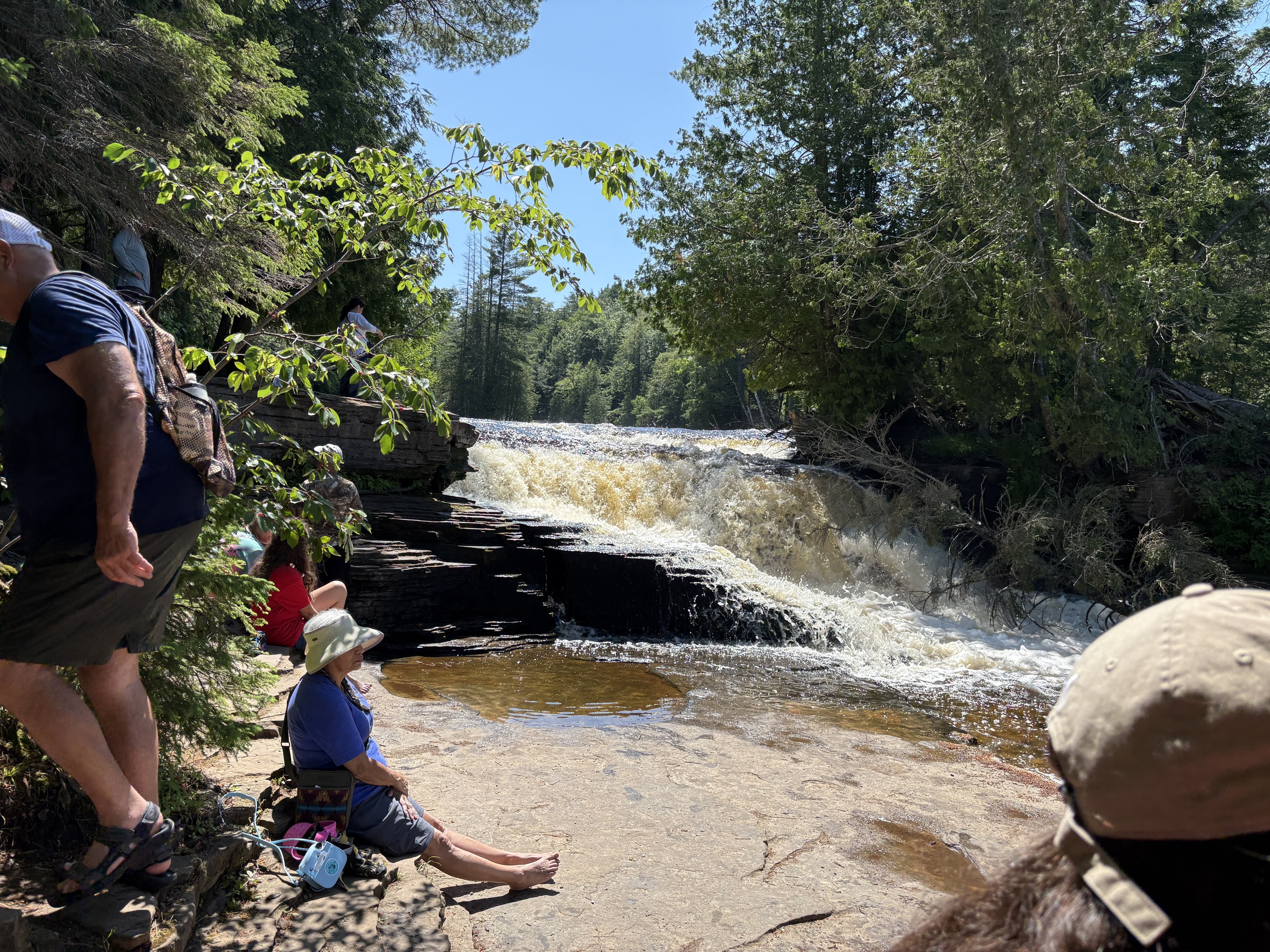 Yes, its shale at Tahquamenon and also at Sable Falls. There is a long tradition, as you see in the photos, of walking in the shallow parts of the Tahquamenon river, where the floor of the river is hard stairstep stone. Easy to accidentally step into a hole as both my youngest and I have done. We always wear shoes walking in the water there.