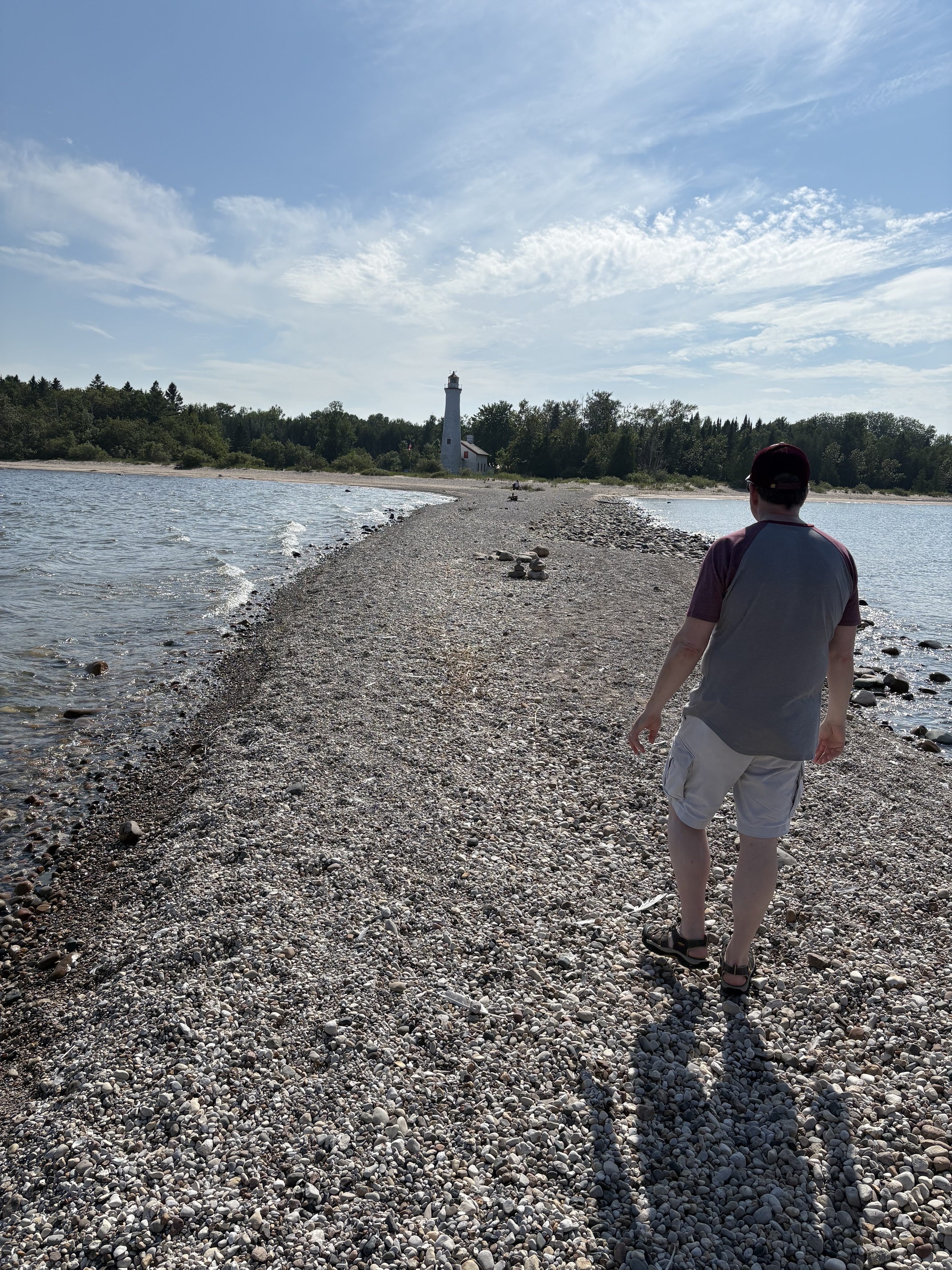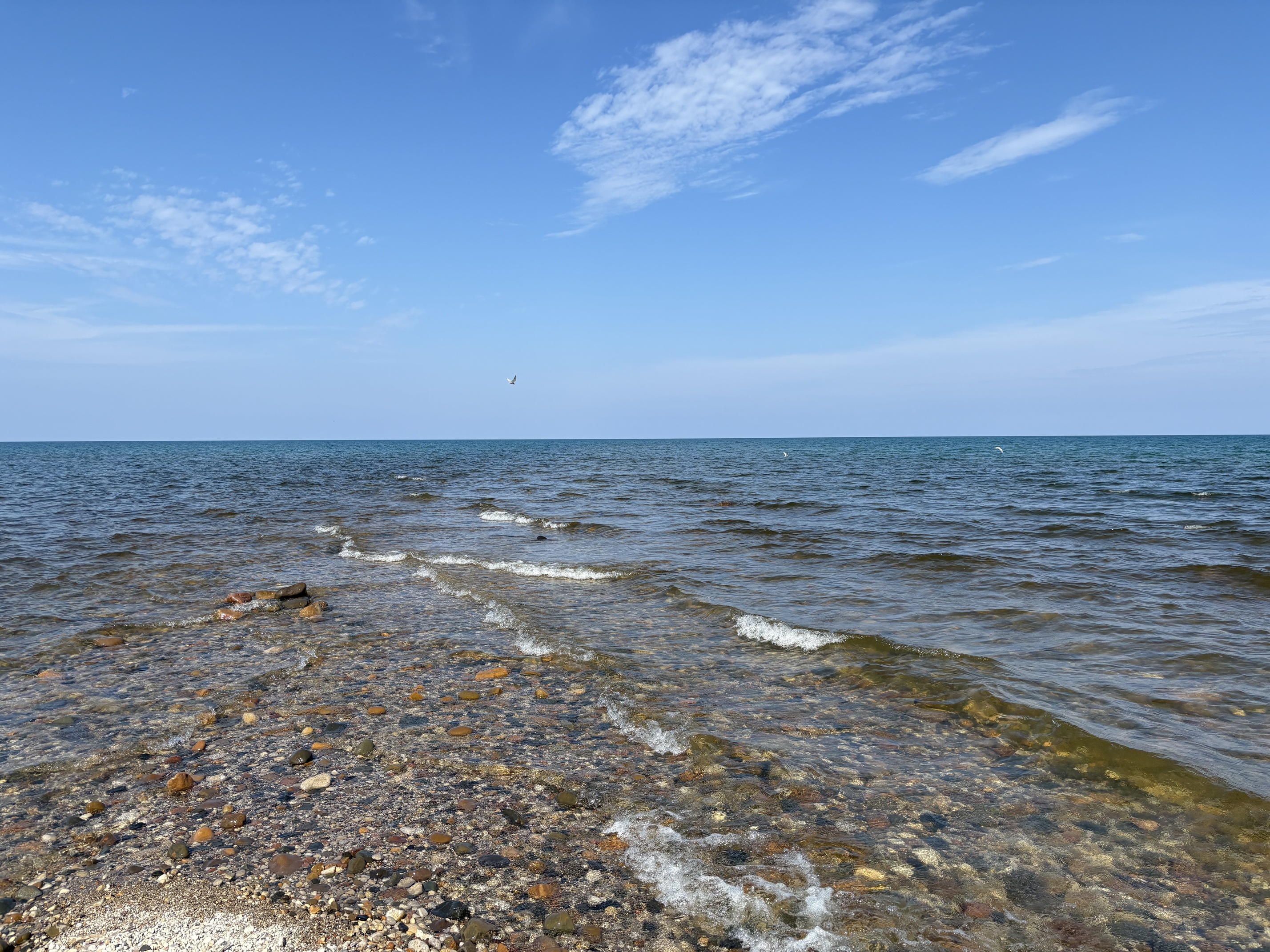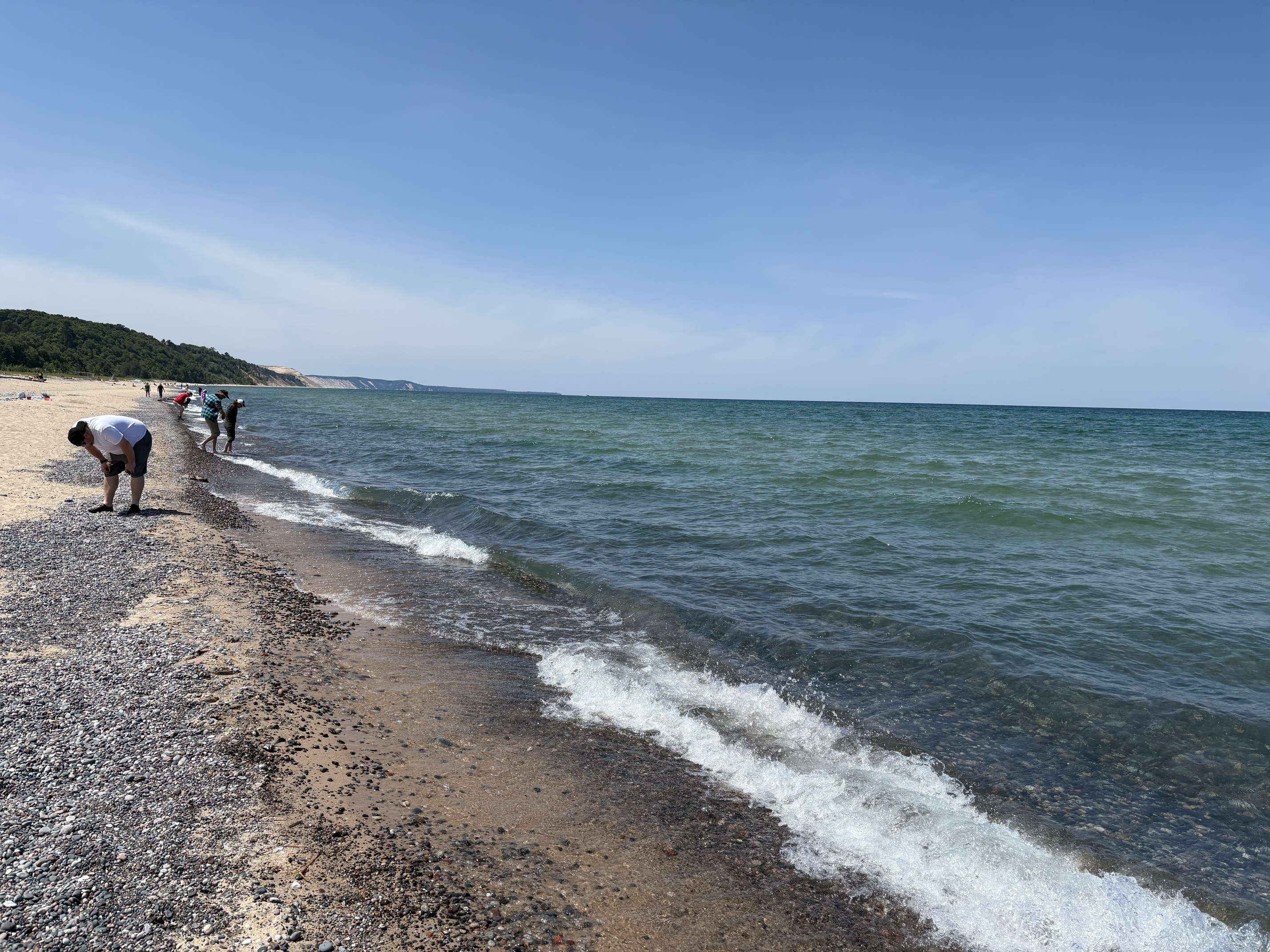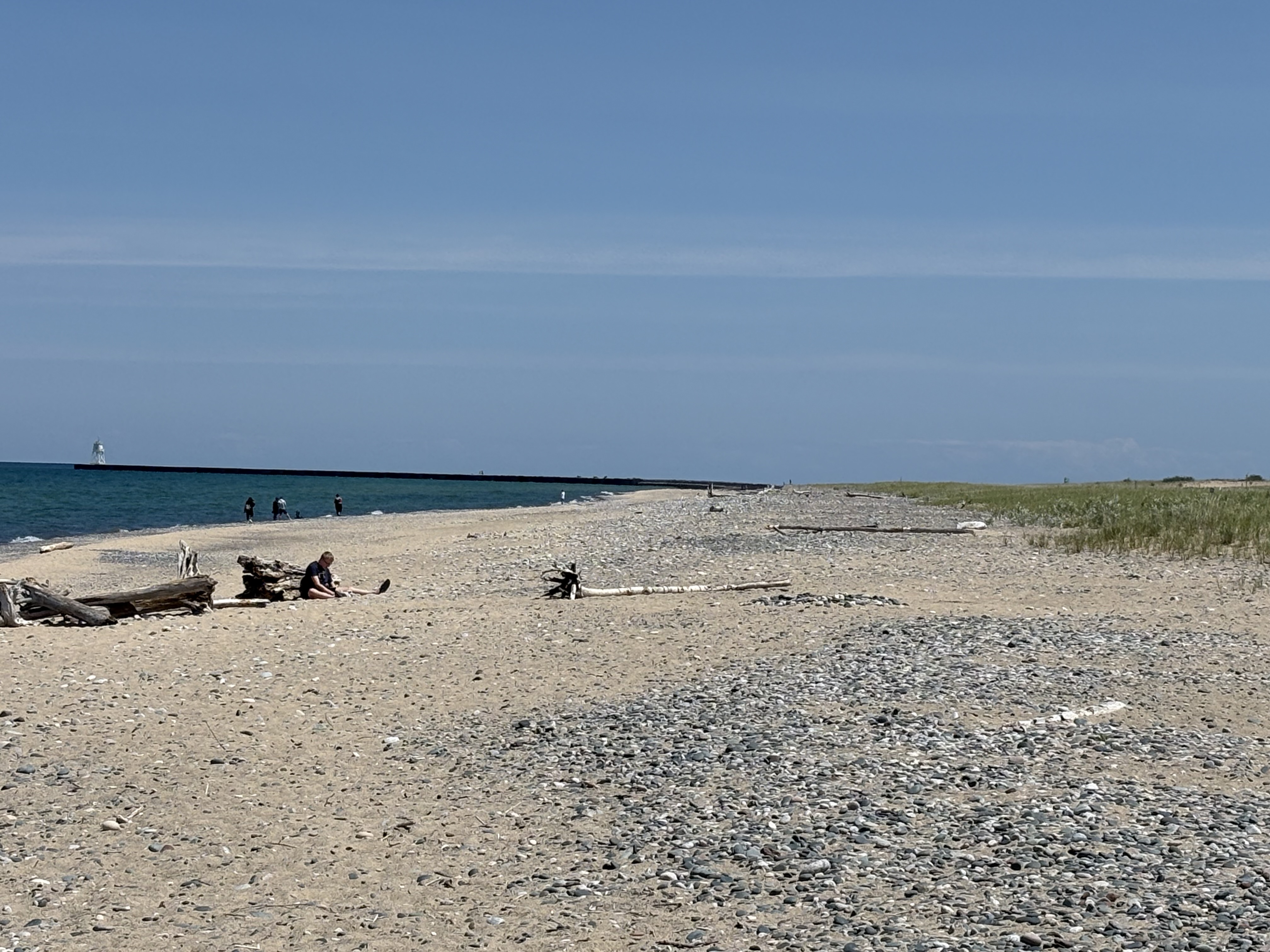Below are some of my shoreline photos from Lake Superior and Lake Huron. Much (most?) of the shorelines are sandy, but many places are stony - much gravel size material, but also larger stones and some boulders, which are usually farther out. I have about 20 pounds of stone out on the deck from this most recent trip.