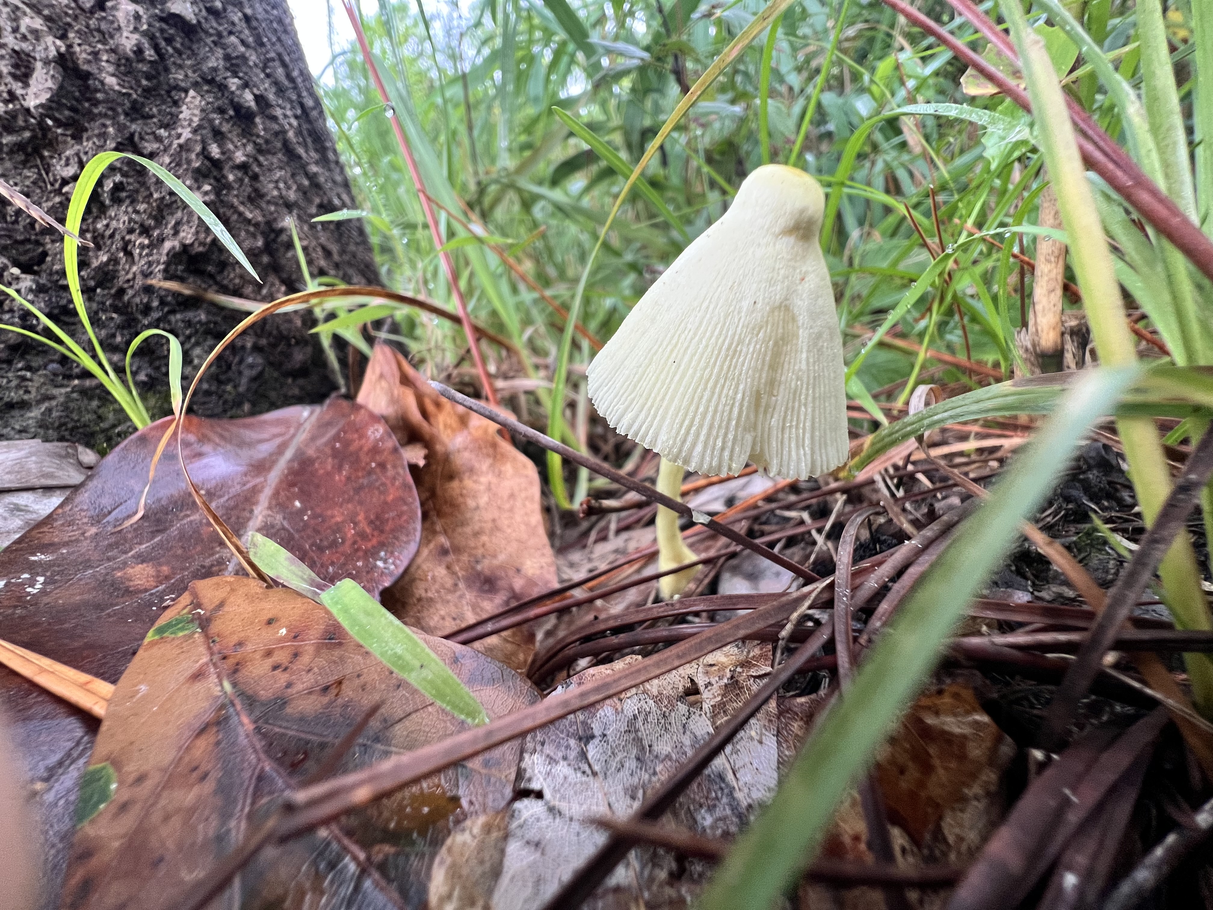 Deer fawn in backyard. Left gate open last night and momma deer made herself at home with my okra plants. Debris line on French is where the water got up to in our recent Texas Hill Country floods