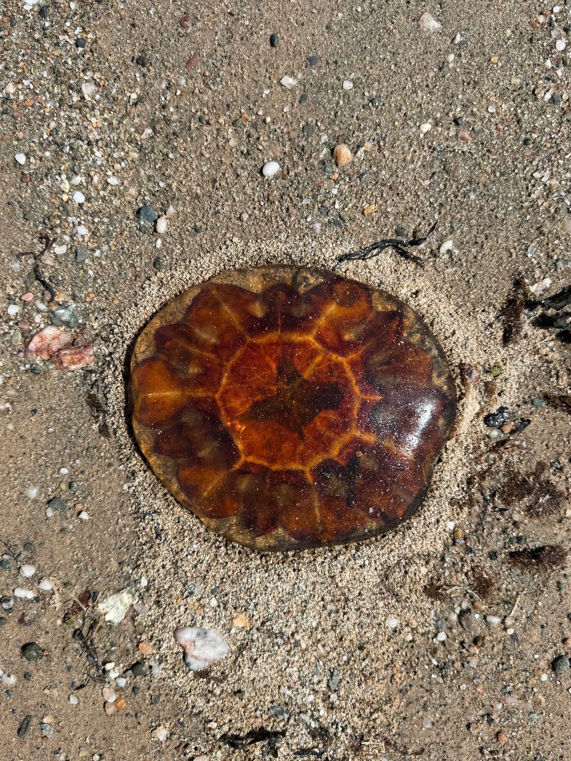 A friend and I came across one with a diameter about the size of that of a basketball a couple of weeks ago. I’ve never seen one washed up before that was even half that large!
