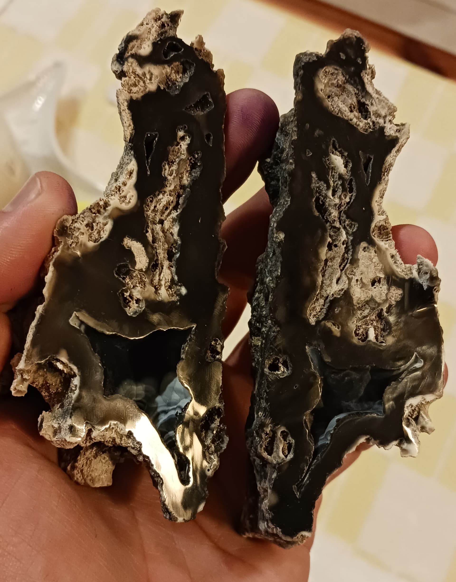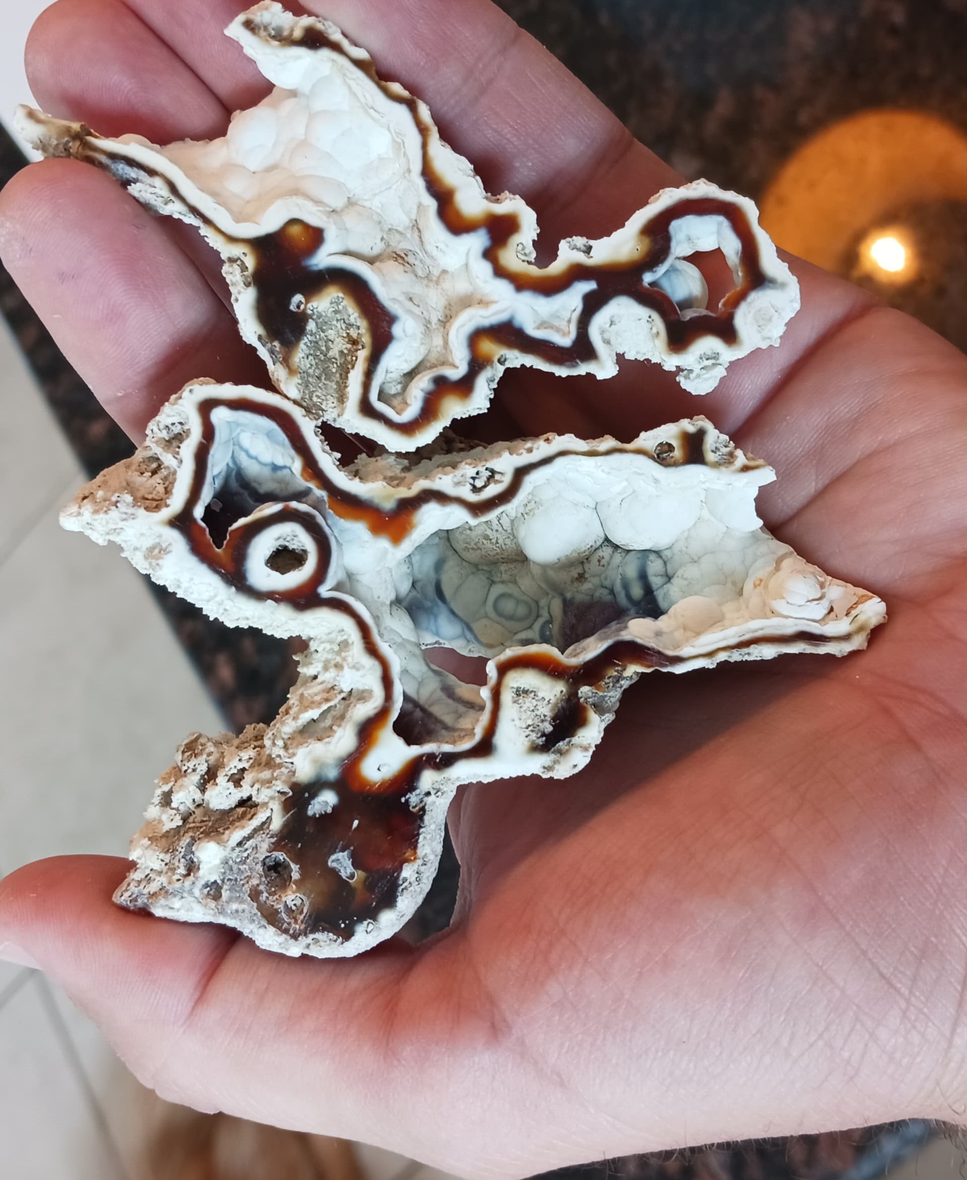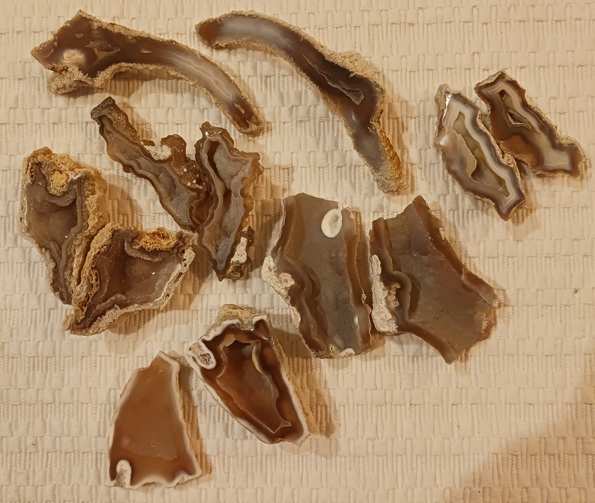 Florida “Agatized” coral. A 30 or so odd million year old coral fossil. Not technically agate, but rather a chalcedony pseudomorph of an ancient coral. Fantastic designs, and most are Fluorescent under UV light, endless fun to cut and polish. My favorite fossil.
