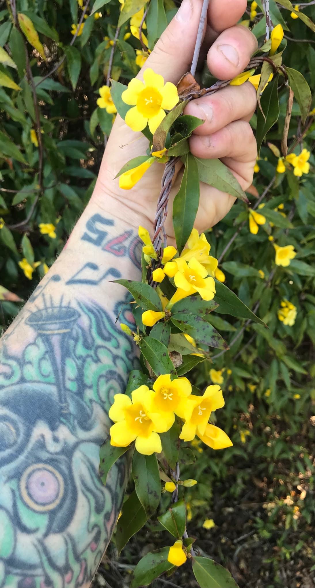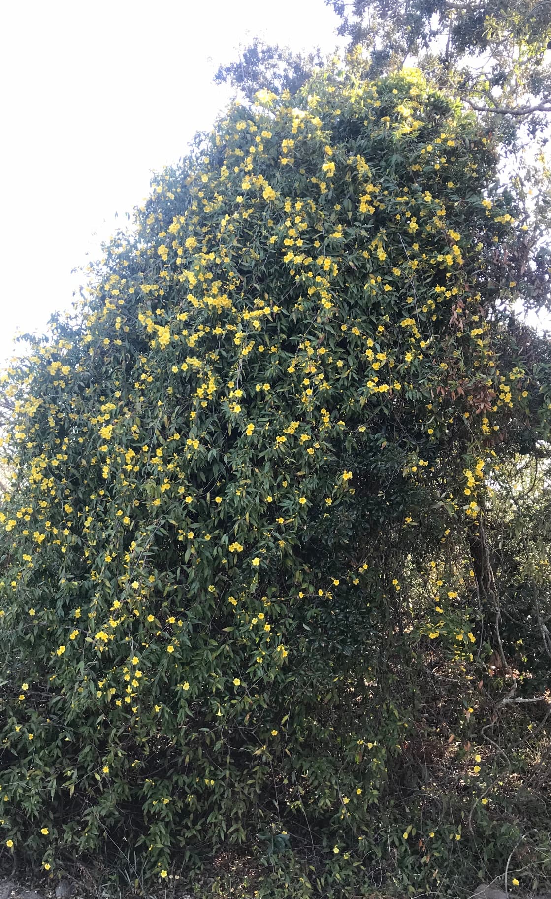 The Carolina Yellow Jasmine. A pretty trumpet style yellow flower that is mostly found either in part time sunlight or dappled
