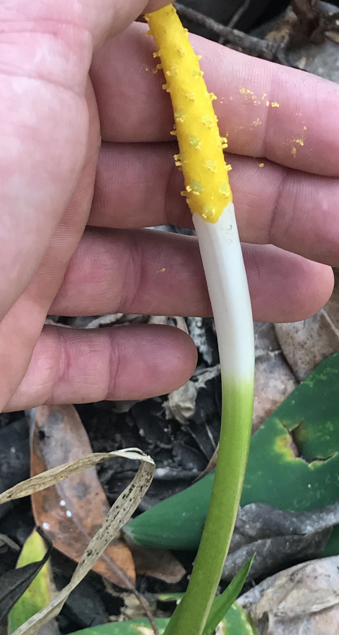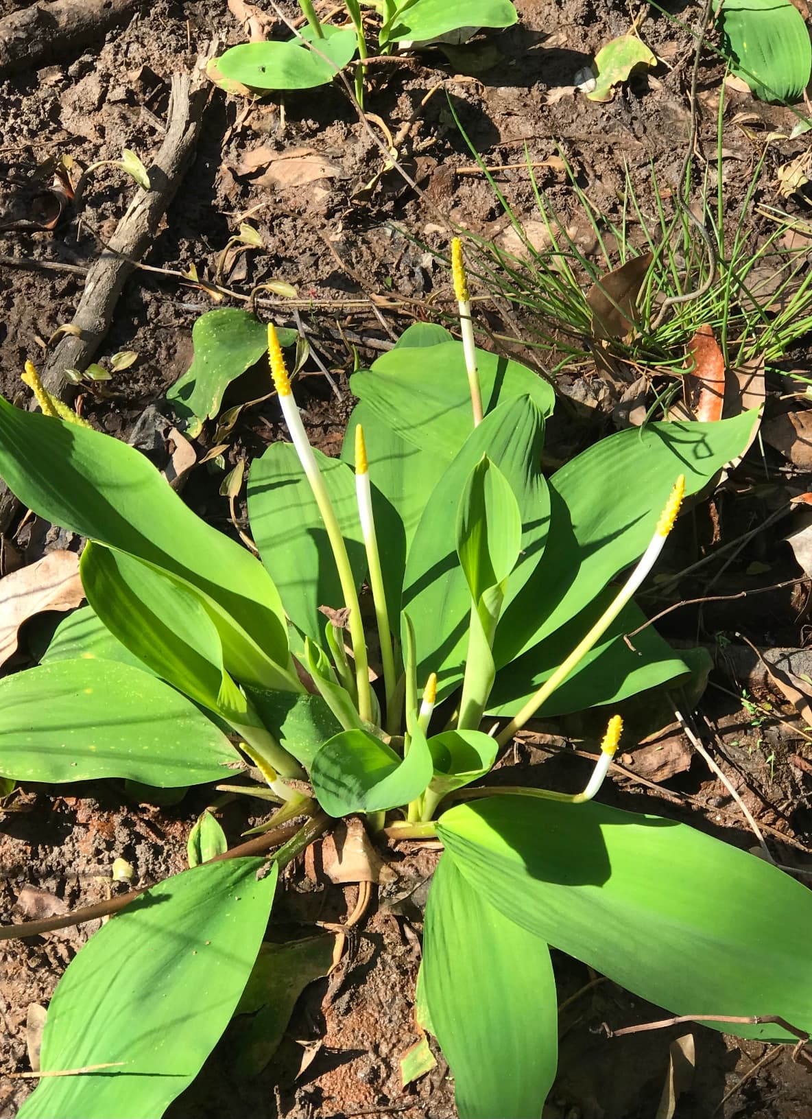 The wetland plant often found along streams in the shallower water and bogs. It’s the “ Golden Club “ in the arum family.