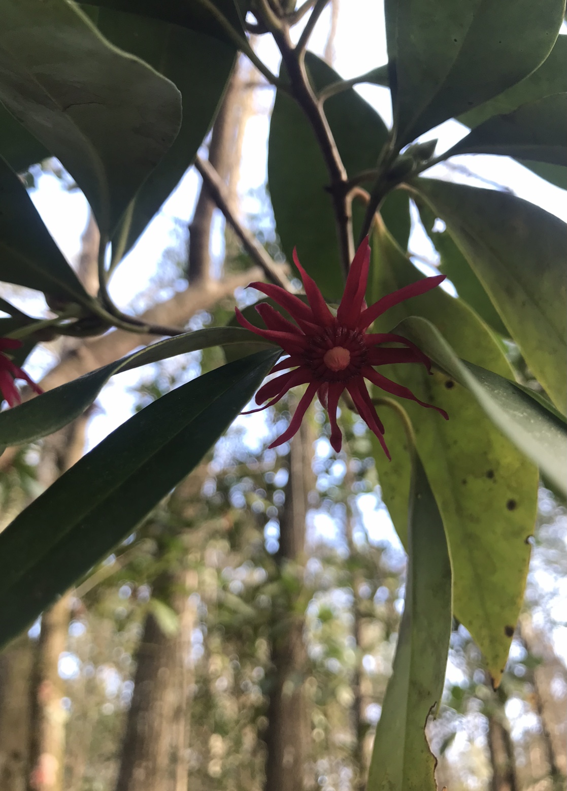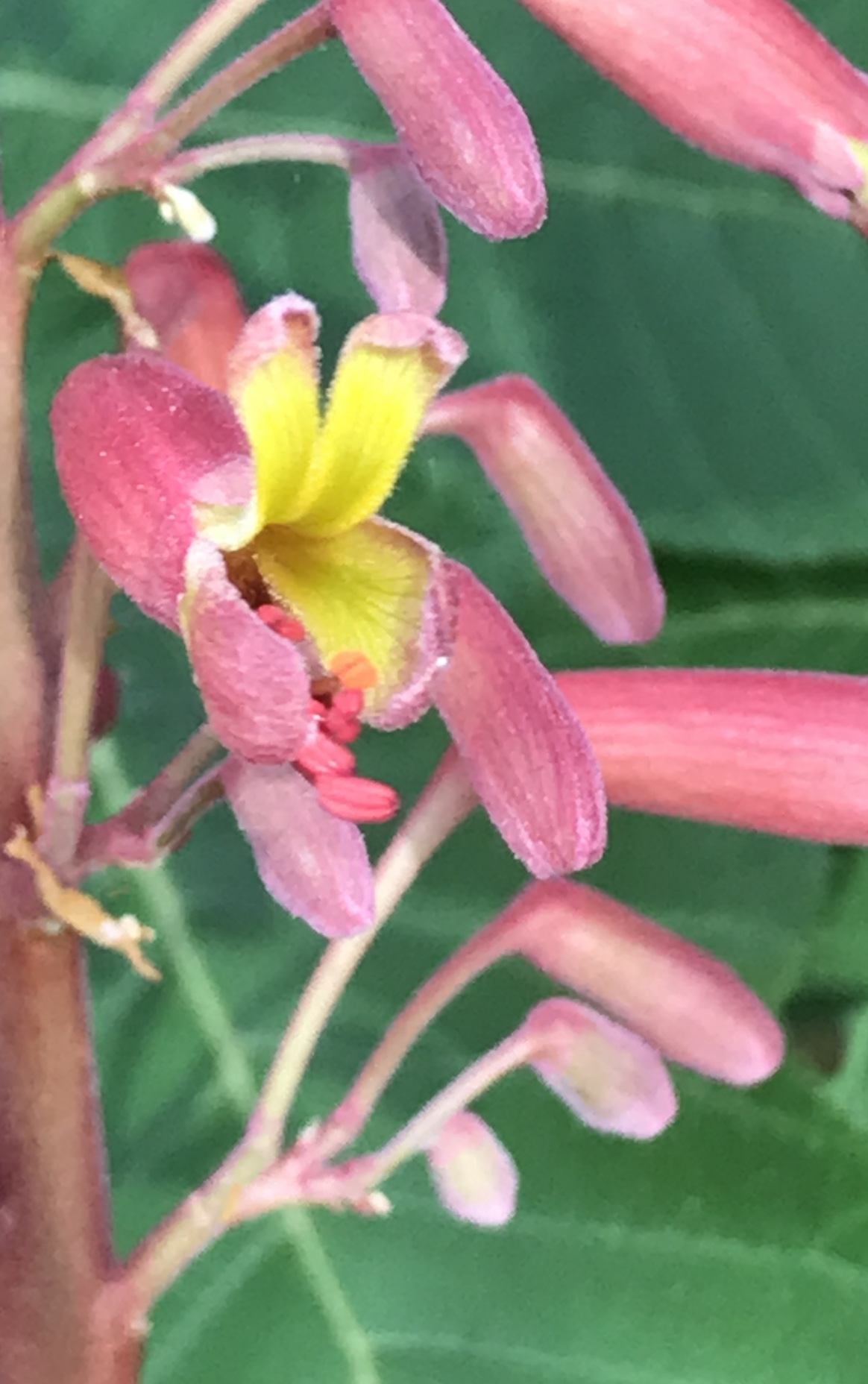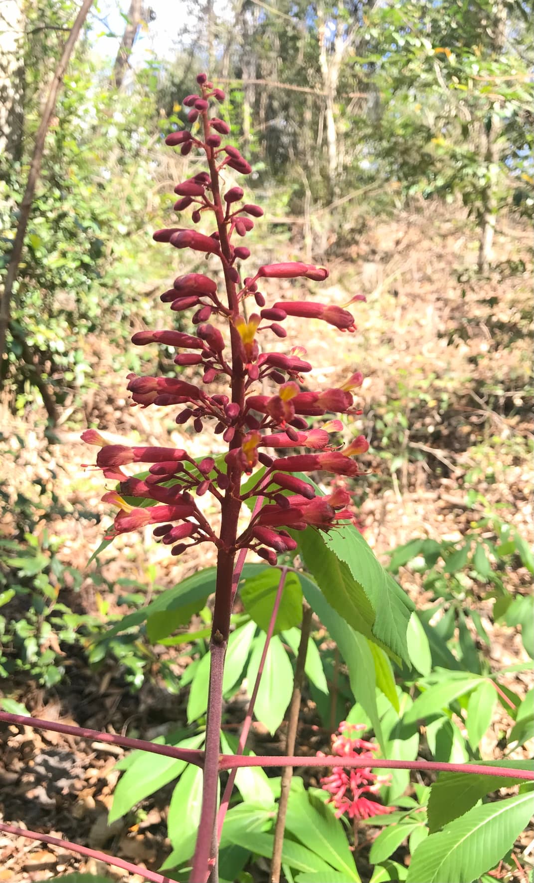 The shade loving Red Buckeye. It’s a woody shrub that typically seems to be around 3-7 feet tall. Hummingbirds especially love them.