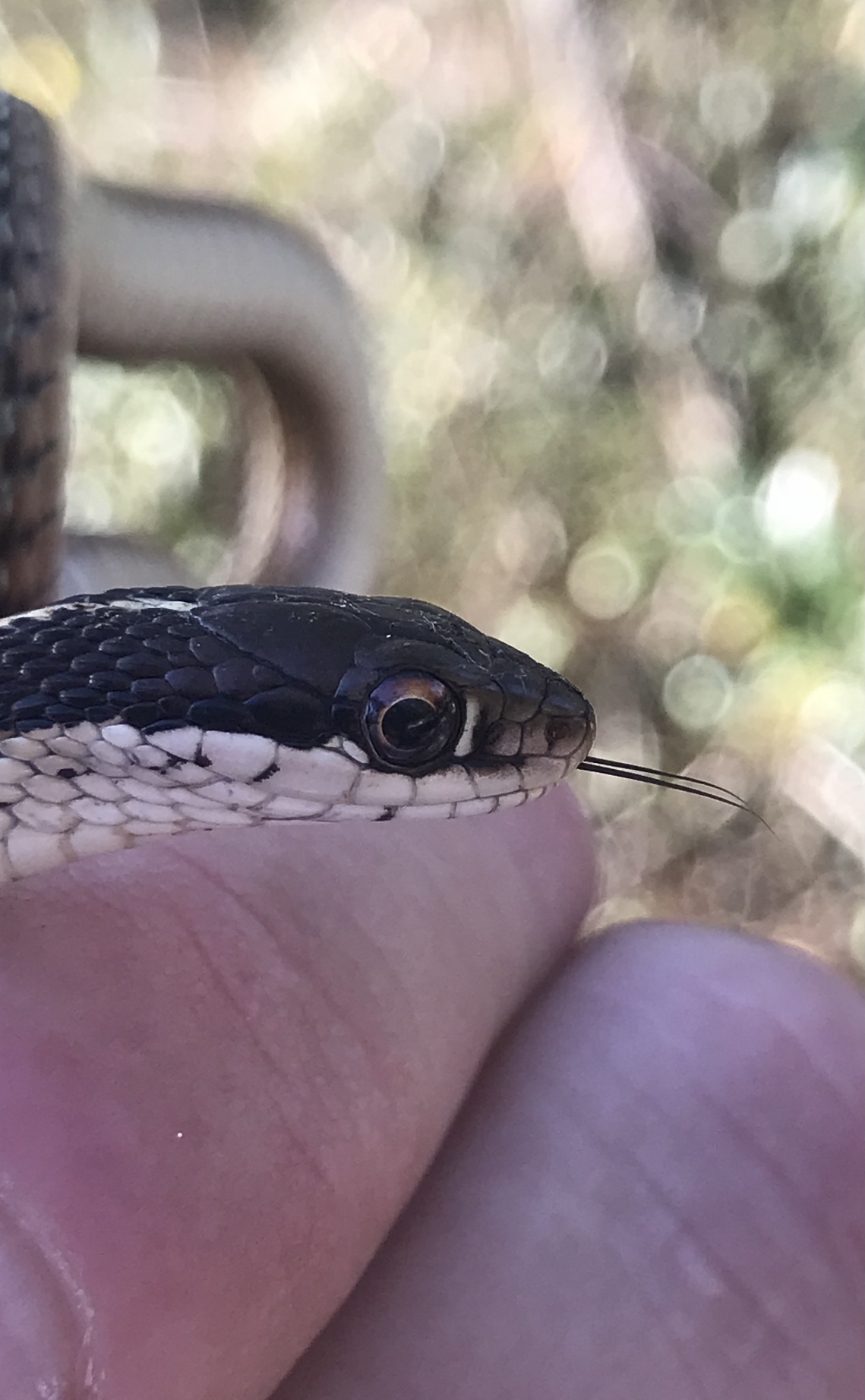 The Ribbon Snake , distinct from the eastern garter snake by the marking in front of their eyes.