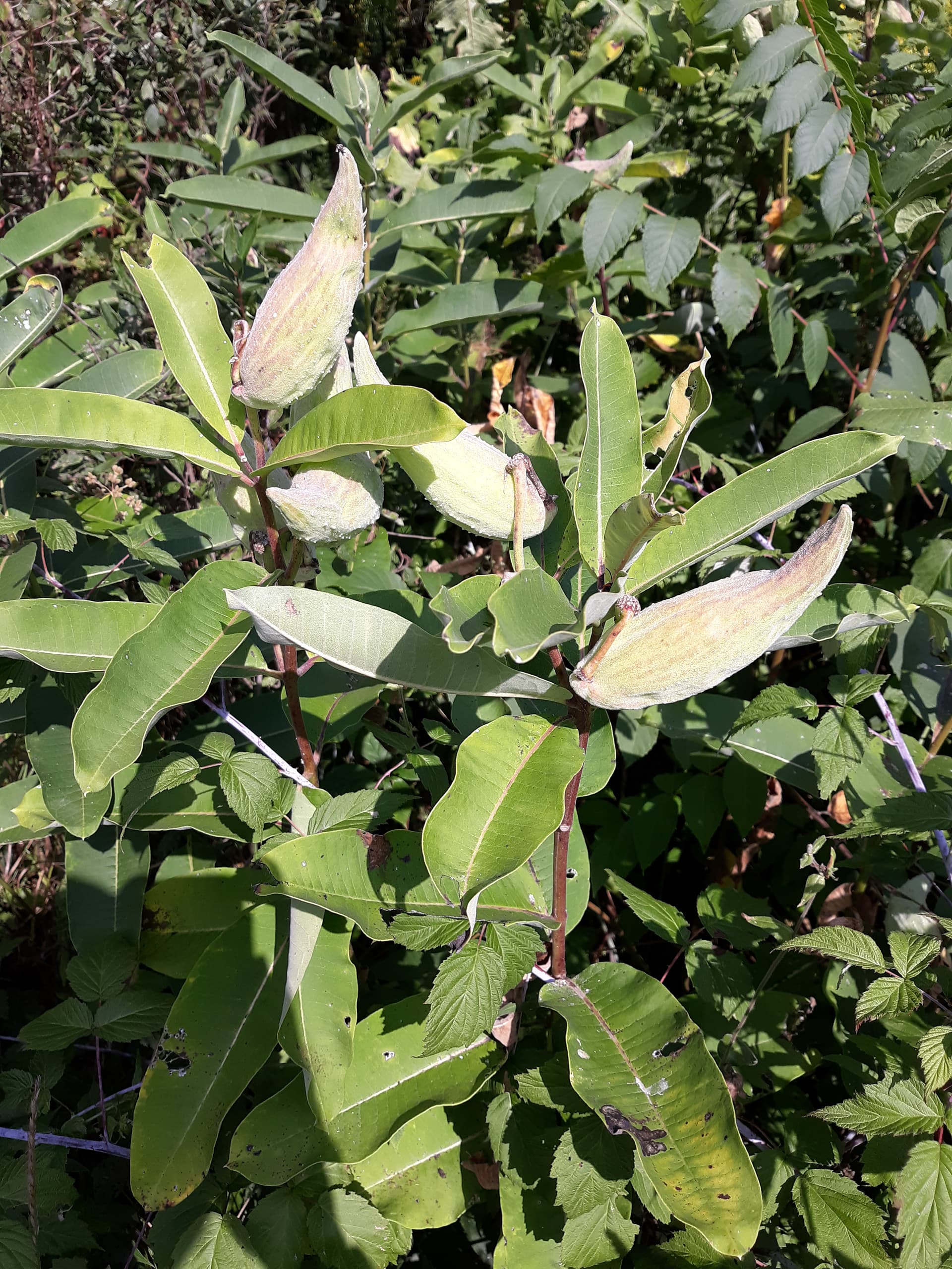 My friend asked for some milkweed seeds, so I’ll give them to her once a pod or two are ripe. We didn’t have much growing on our property until my youngest was little. She liked to play with the fluff. So we had fun pulling the pods apart, pulling the fluff out, and letting the seeds eventually fly. The butterflies seem to approve of this move.