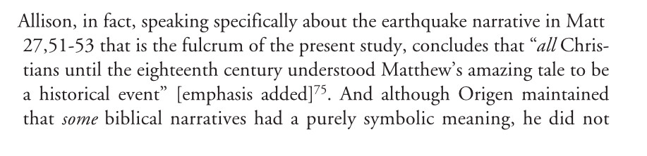 A better scenario emerges when we notice how Matthew interlocks this scene with the next chapter: namely, earthquakes coinciding with the tomb-opening of both the saints and Jesus (Matt. 27:51; 28:2), and the subtle foreshadowing of Jesus’s resurrection in 27:53, which Matthew doesn’t actually narrate until 28:5–6. He times the saints’ resurrection appearances after Jesus’s own but narrates theirs out of order to deal with these saints in one fell swoop, and thereby maintain focus on Jesus in the next chapter.