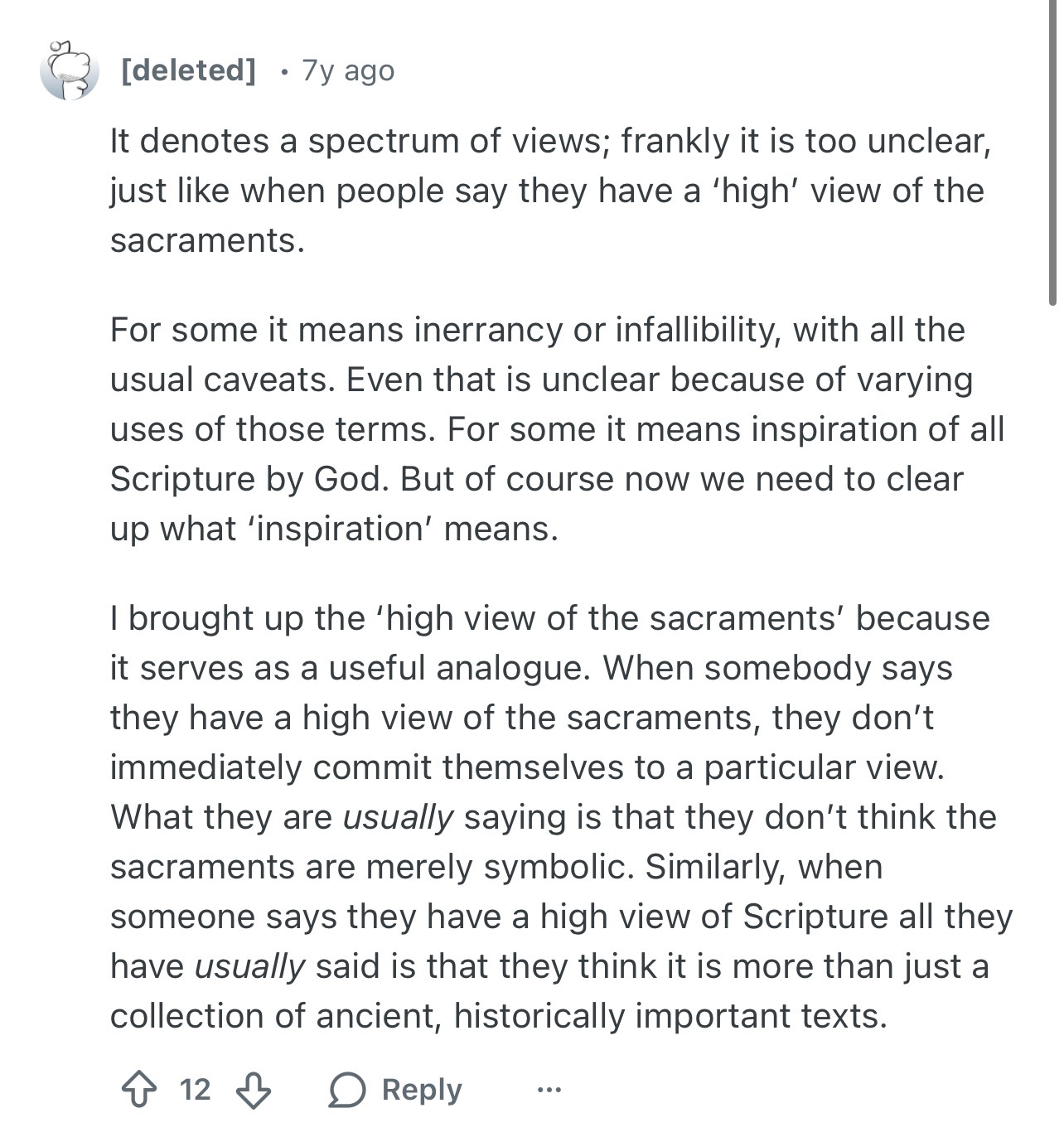 I reading that, I have several questions. 1. What is a high view of scripture?