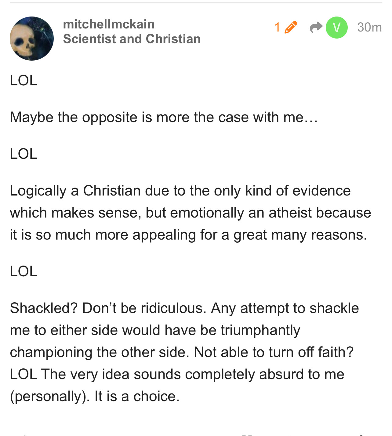 I don’t take offense to people’s perspective. For me I don’t feel that my faith is really in crisis, but my faith has always been far more driven by God firstly and Jesus secondly. How I view Jesus and his divinity bounces around, but I feel my faith in god is quite sound, even if it’s out of my control as in I don’t choose to think god exists or don’t exist. He just does and despite me personally not seeing the evidence the belief is still there. I feel my faith is actually far better now than when I first joined. Mostly just having better language to describe it. Such as in very much in the camp of conscious pantheism, conscious cosmopsychism, the omega point having already sort of occurred.