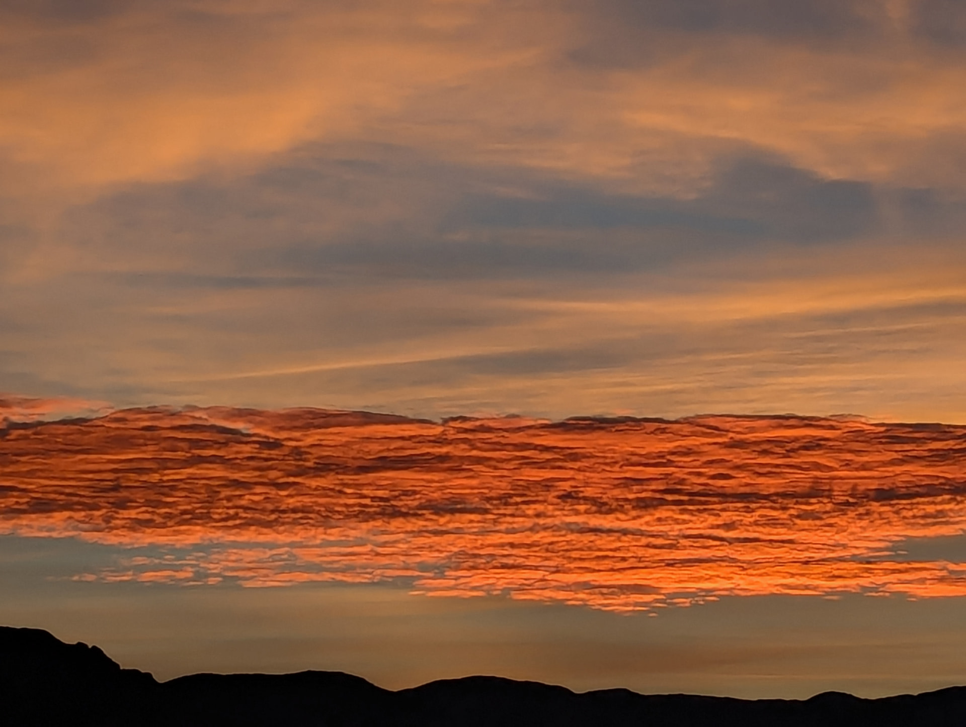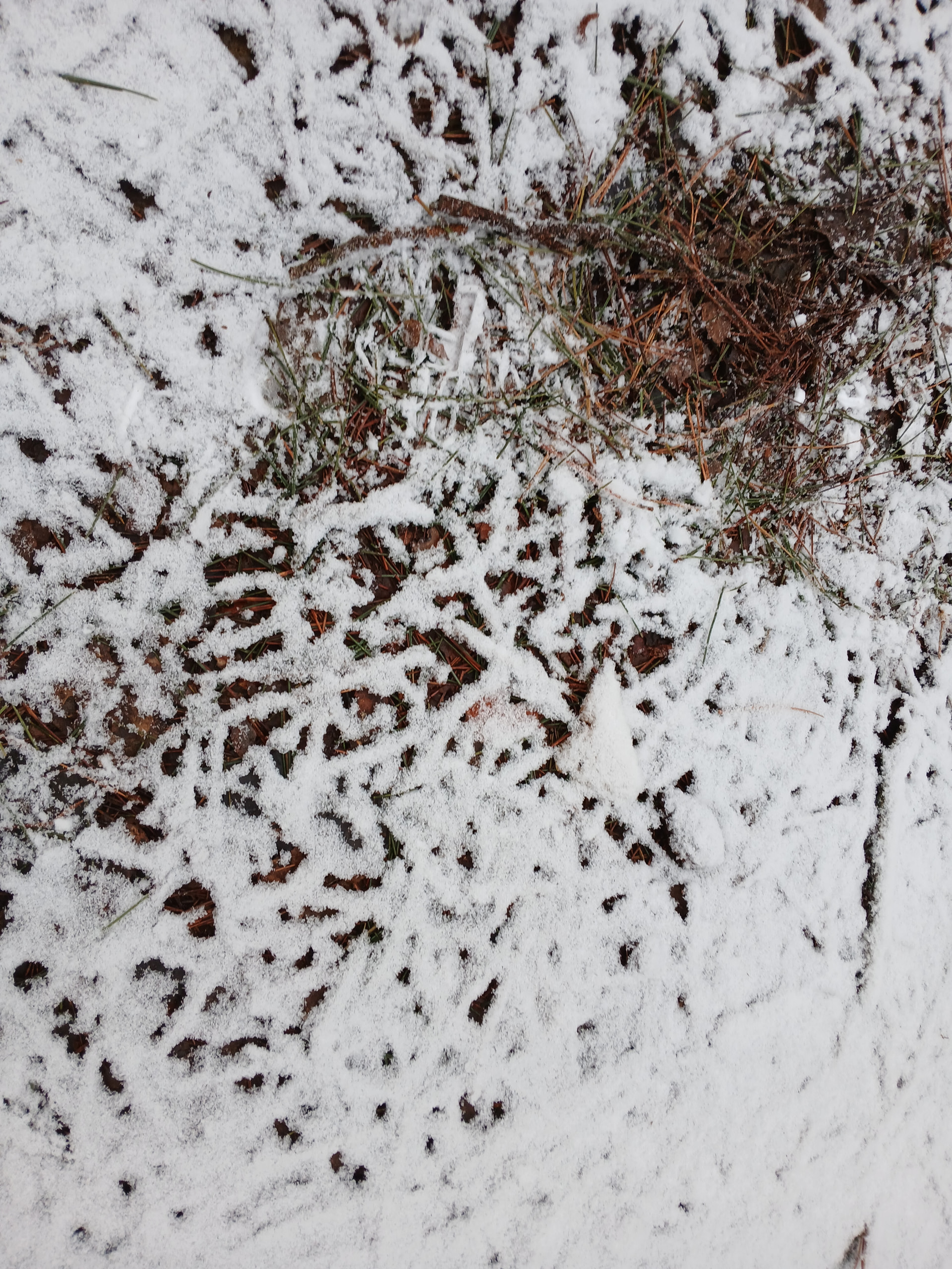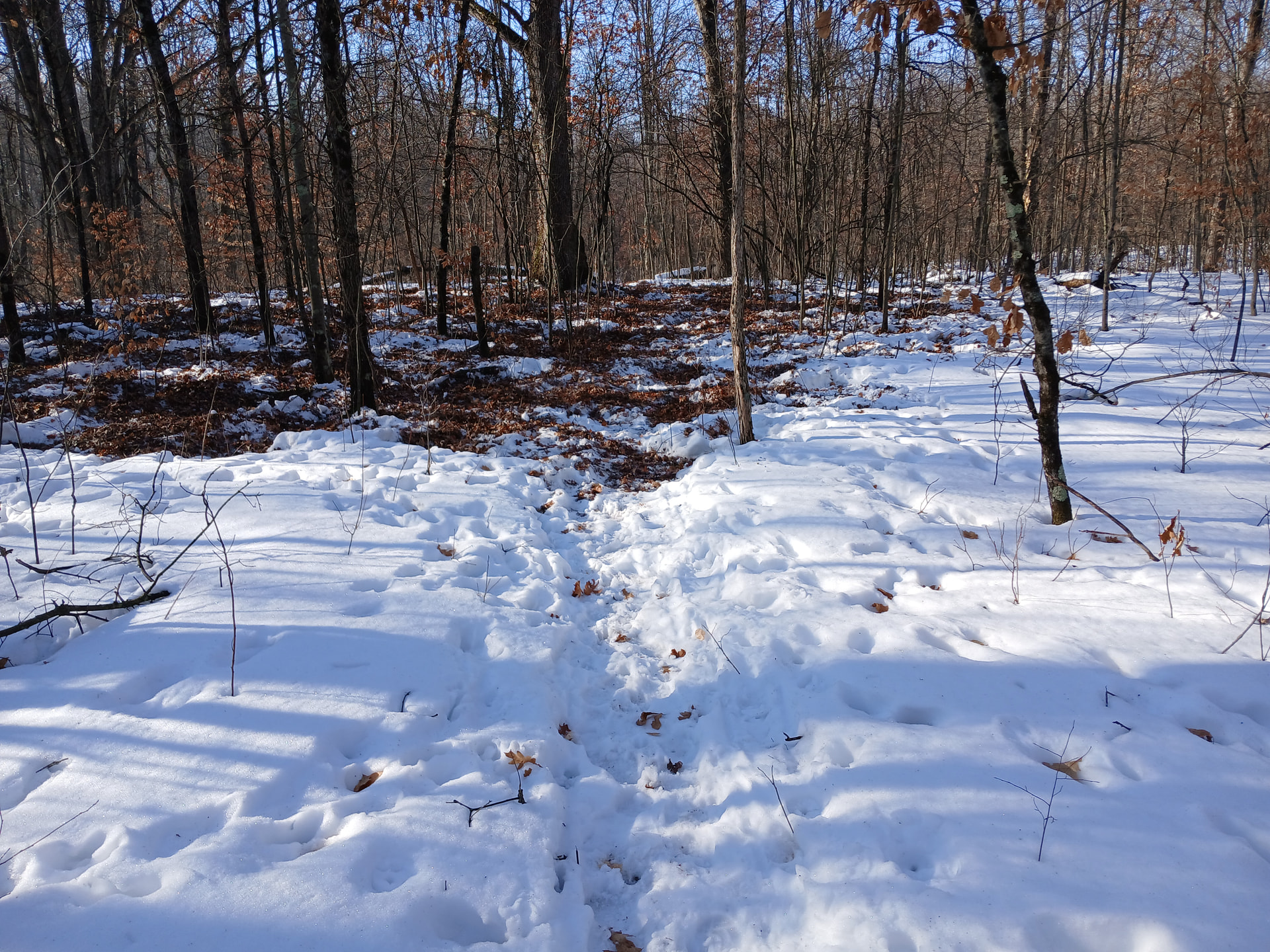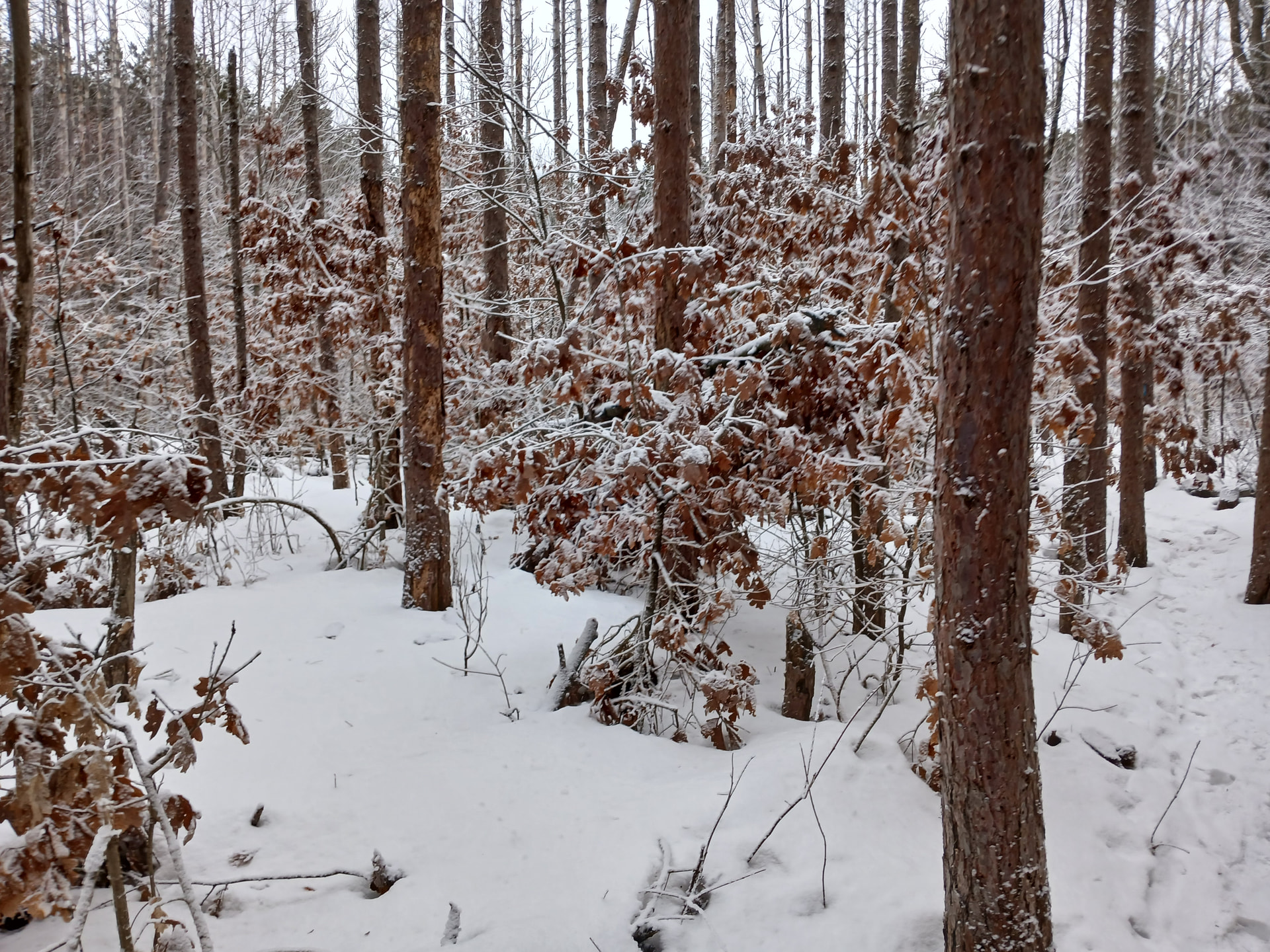 There was some delicate frost on evergreens we planted as fingerlings from Arbor Circle 20 years ago, when we first moved here. A faint pinkish glow showed through the woods on a walk with my son and dog the other day; a faint sheen of ice coated the farms next door, blown clean by the wind; I enjoy the dramatic branches of winter trees pointing skyward; and an old road on the property that my kids use for walking the dog.
