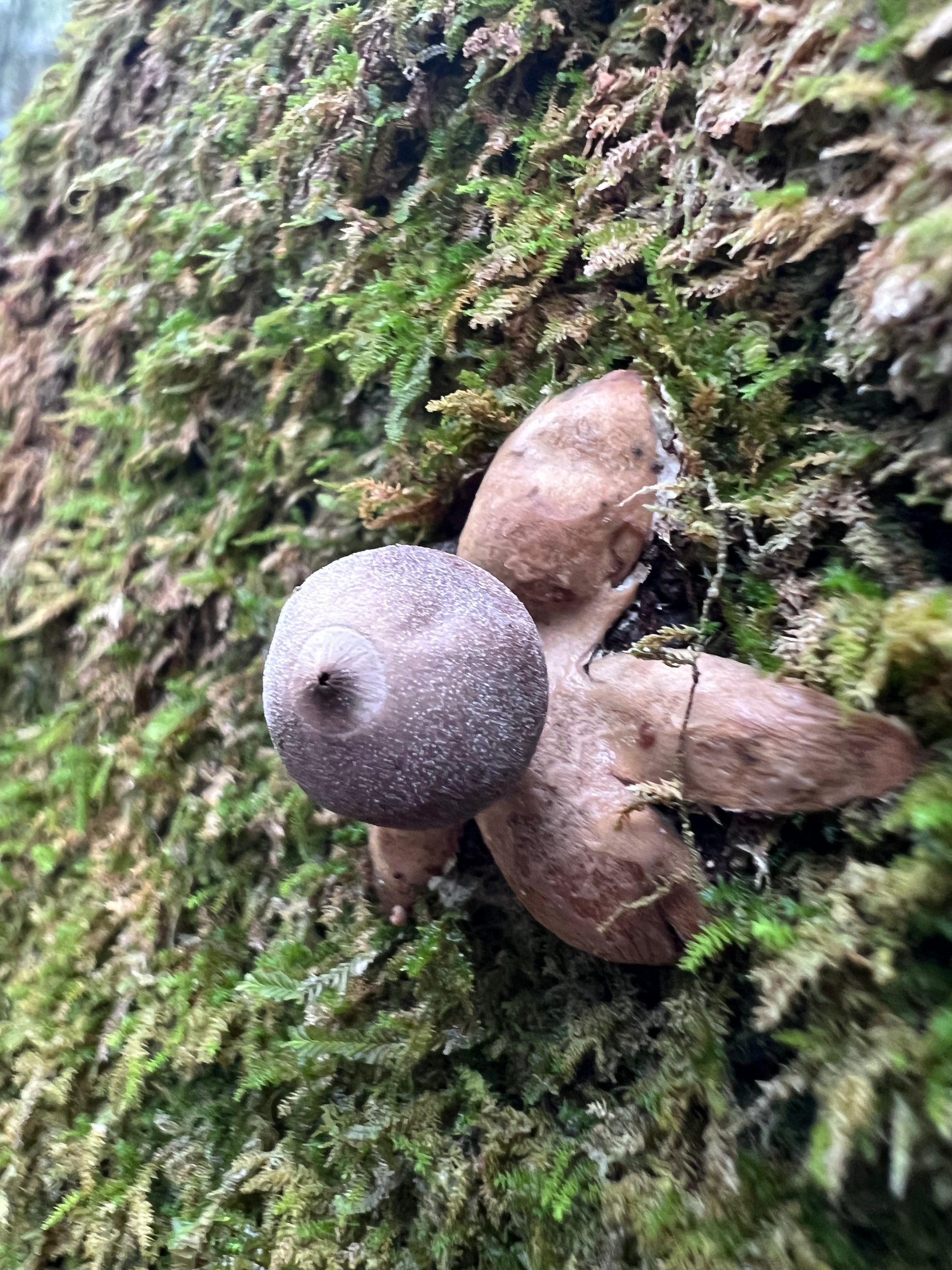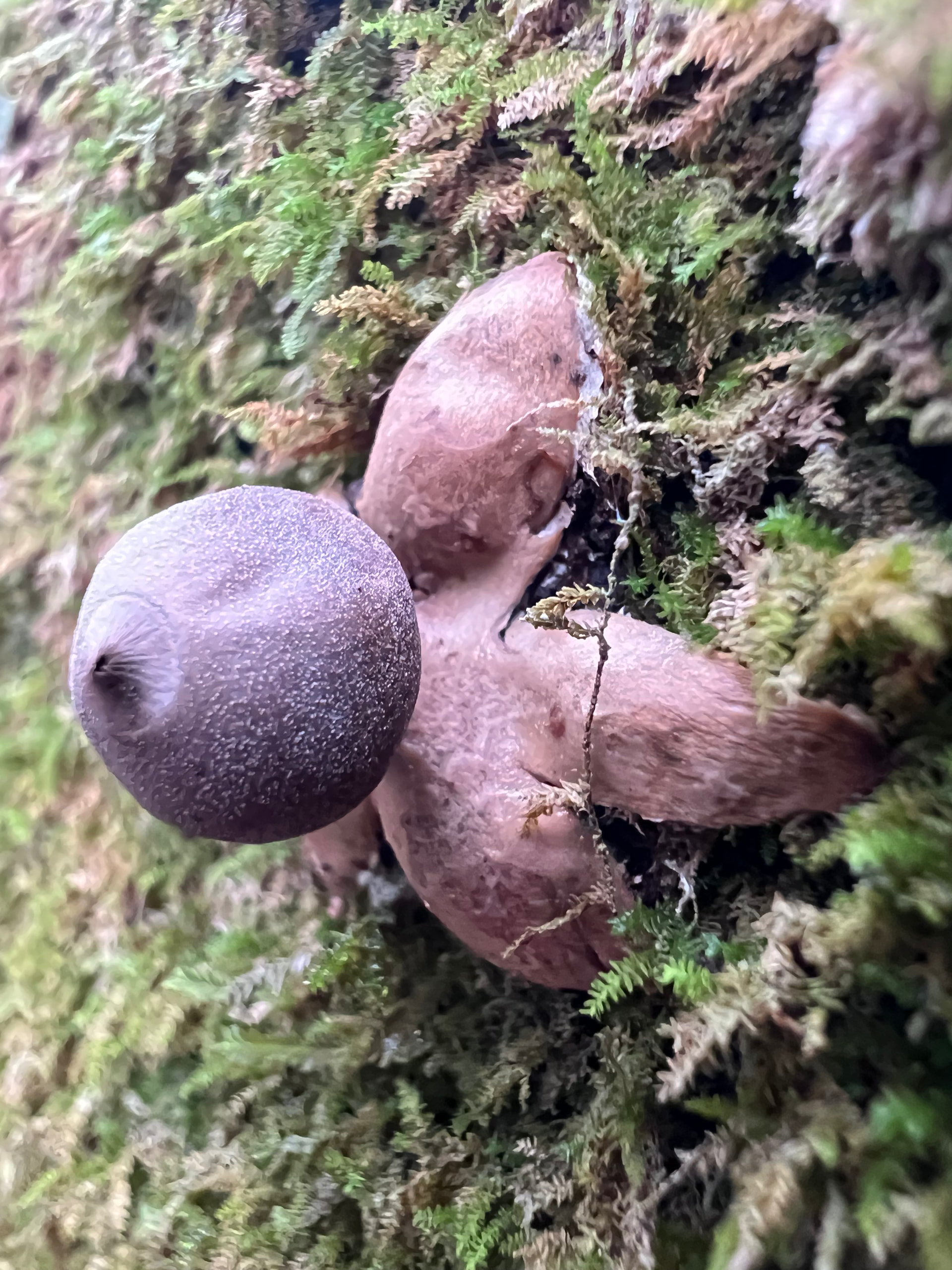 First time seeing an earthstar ( type of puffball ) growing on a tree.