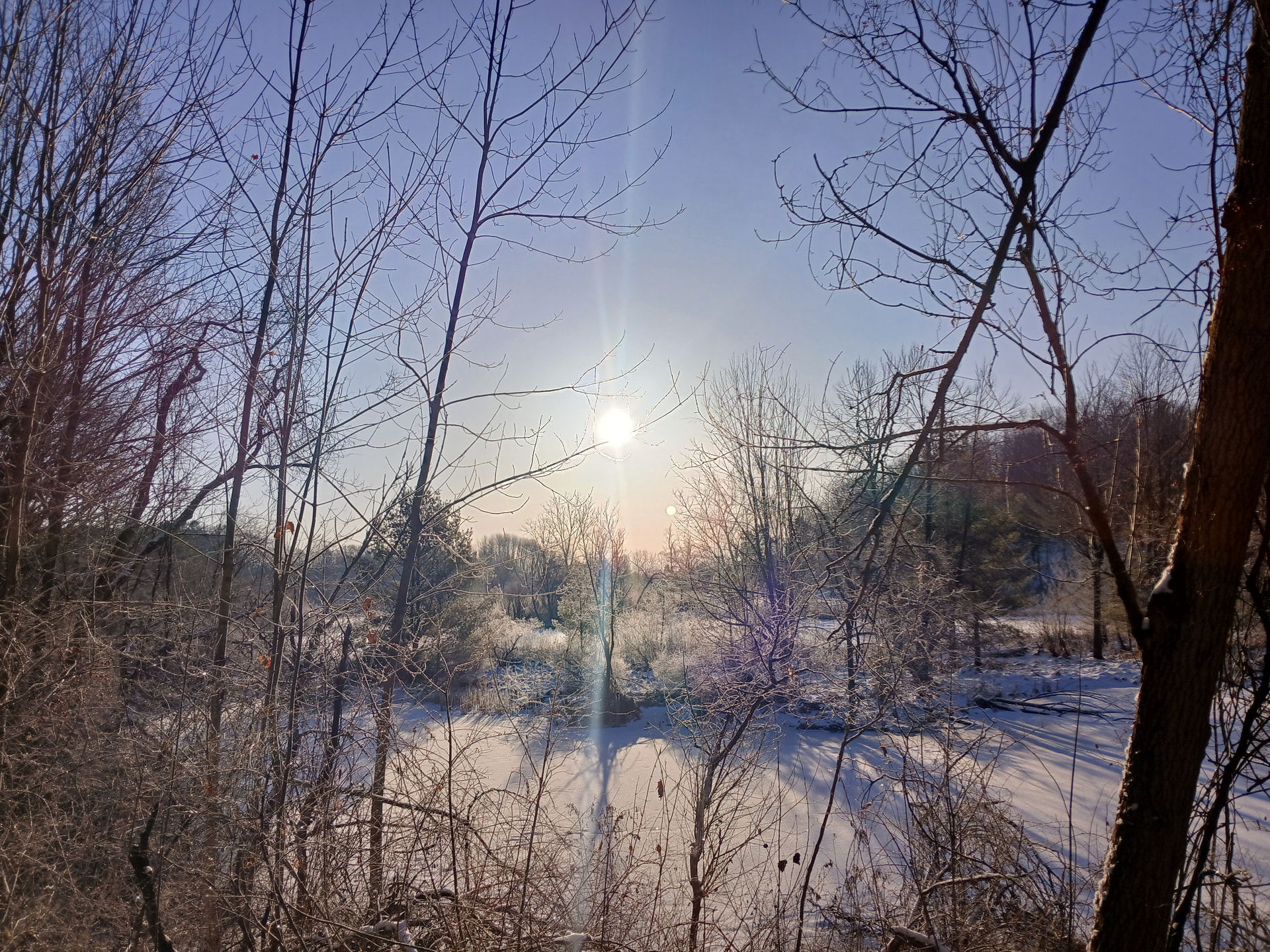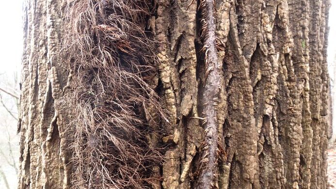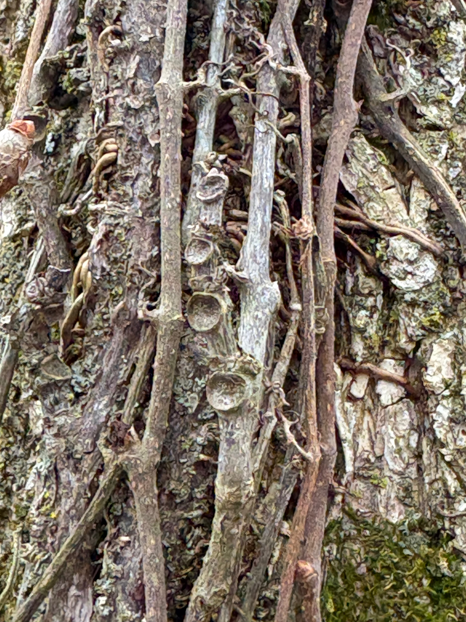 Found this article about identifying poison ivy and Virginia creeper on trees in the winter. Looks like my viney tree above probably has both on it.