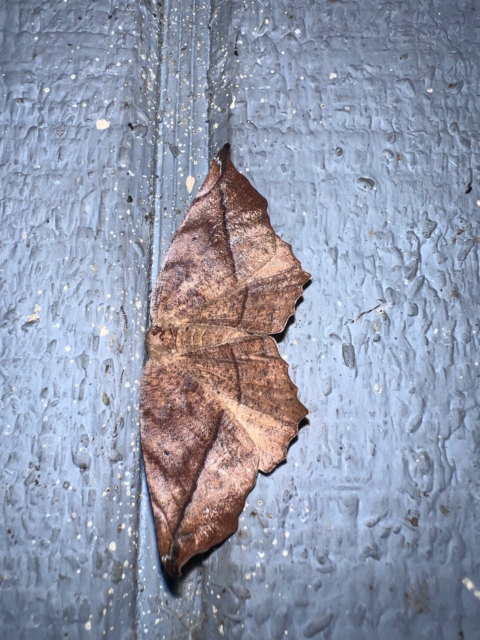 They are both here in south Alabama. Many of the Eutrapelahave much more rounded off wingtips. So I guess if I was betting I would probably lean into It’s a species of Eutrapela.
