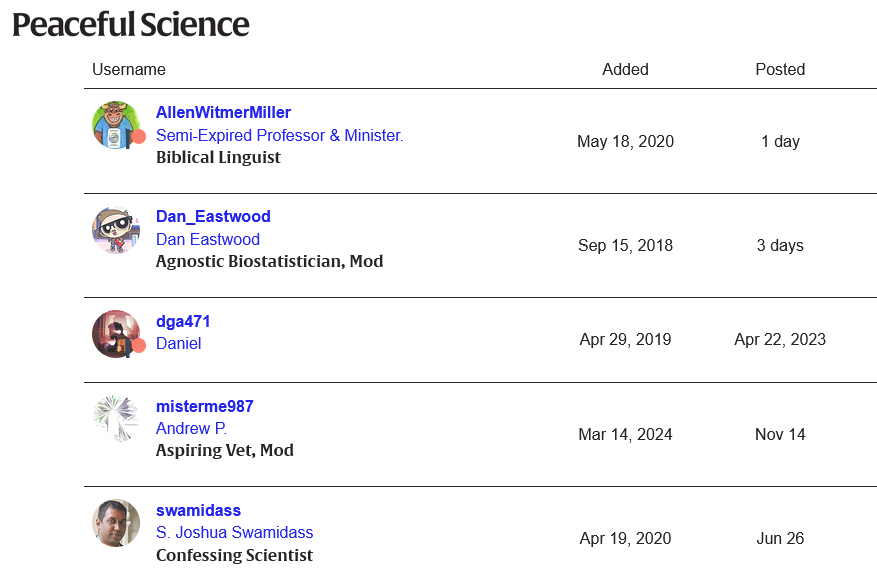 I am more interested in the posting above about who the ACTIVE moderators have become. Certainly PeacefulScience.Org is capable of quick changes. And if my postings have contributed to that I would be surprised! - - that all my pleadings WITHIN the PS came to naught … but make a few peeps as a refugee at another camp fire …. and things start a poppin???