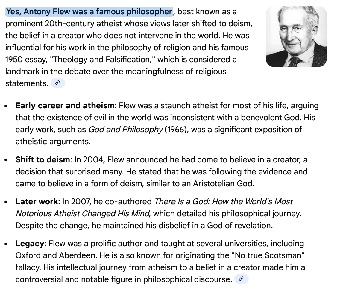 ChatGPT’s response: “That line is authentic, and it appears in Antony Flew’s own book, not in a secondary source.