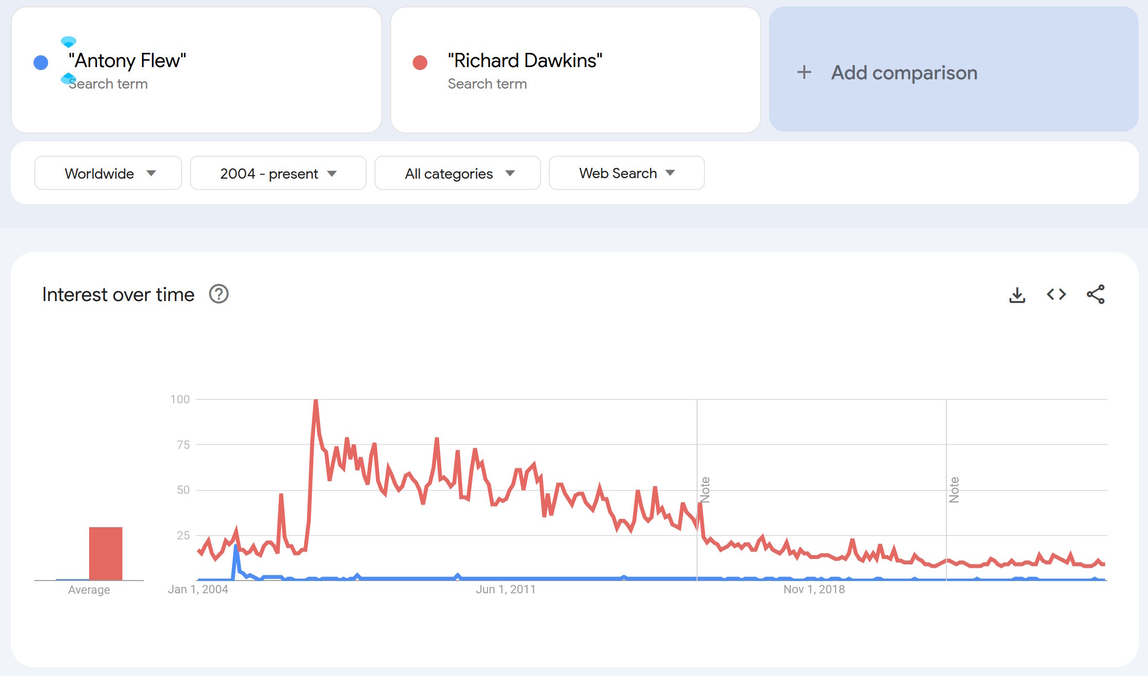 Can anybody find evidence, from before Flew changed his mind in 2004, of him being described as “the world’s most prominent atheist” (“perhaps” or otherwise) or as “the World’s Most Notorious Atheist”, or anything that comes close to this?