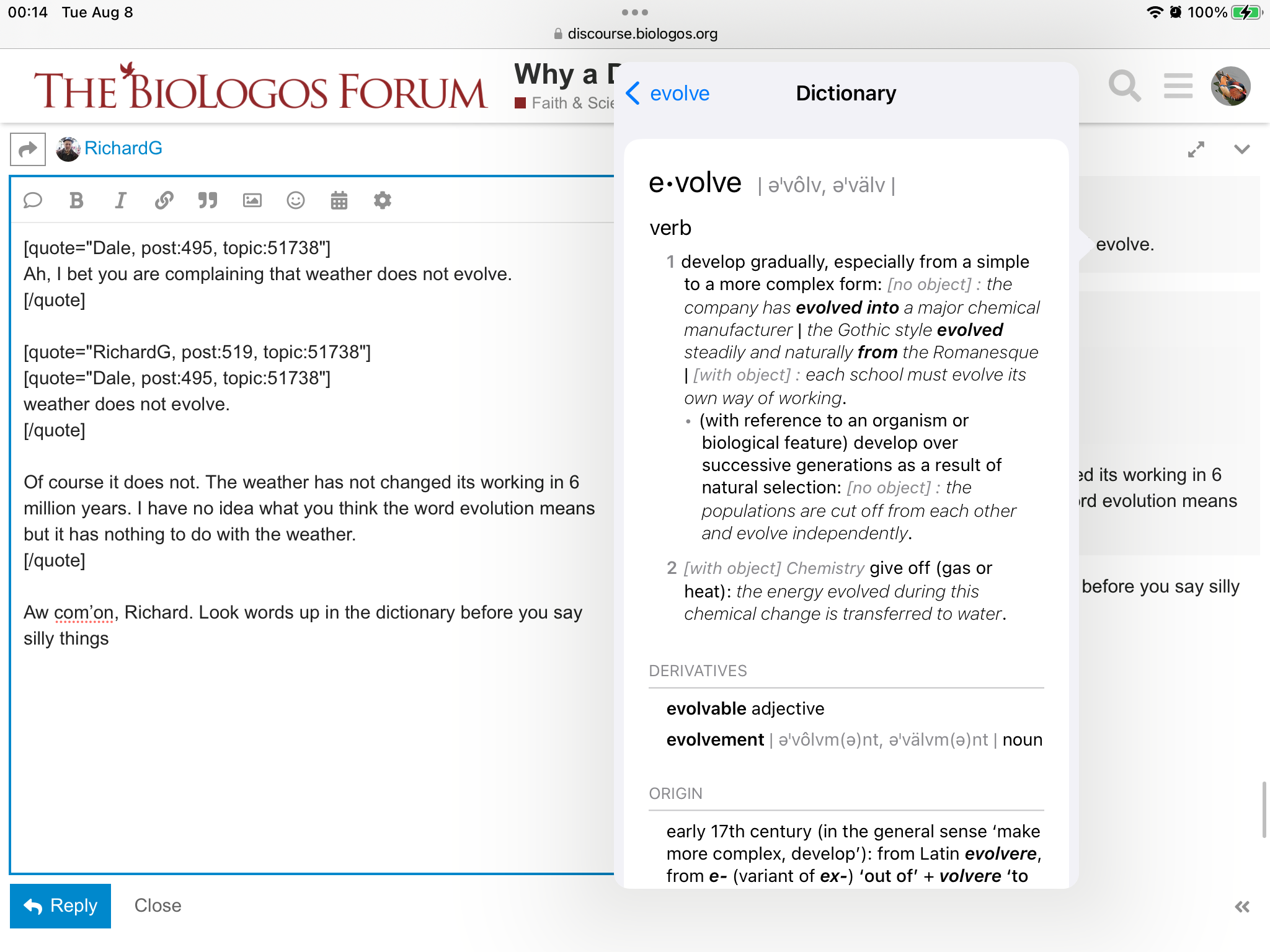 The principles of the weather would have been established from the outset. There is nothing to evolve. You are not using a correct analogy because you fail to see the principles involved