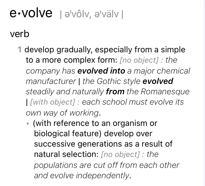 A common way of understanding the word is simply ‘change over time’. Just this evening I was watching a series of thunderstorms on a weather radar app as they evolved while approaching where we live. That is perfectly legitimate use of the word. It is not exclusive to biology as you appear to think it is.